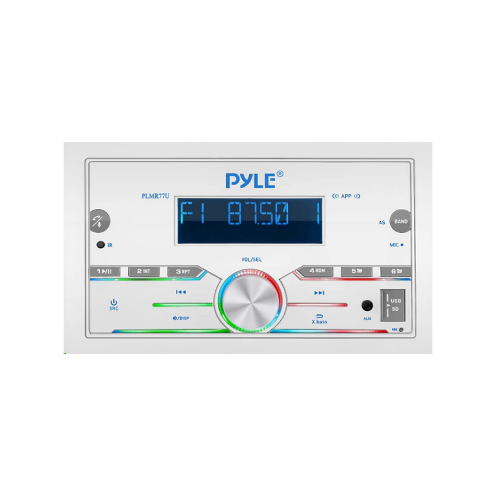 Marine Stereo Receiver Power Amplifier - AM/FM/MP3/USB/AUX/SD Card Reader Marine Stereo Receiver, Single DIN, 30 Preset Memory Stations, LCD Display with Remote Control - Pyle PLMR77U