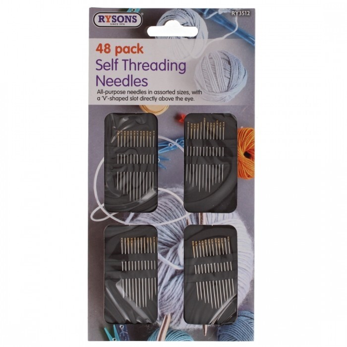 - ALL PURPOSE NEEDLES IN ASSORTED SIZES, WITH A "V" SHAPED SLOT DIRECTLY ABOVE THE EYE.