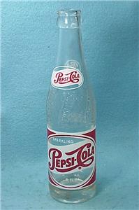 - Specifics about this item - Advertising soda bottle, appears to be dated from 1954, is a 8 ounce size with red graphics on a white panel from a generic PEPSI bottler / NO city.