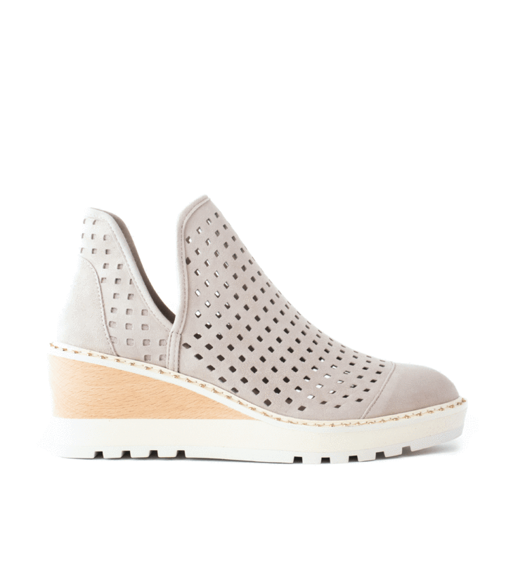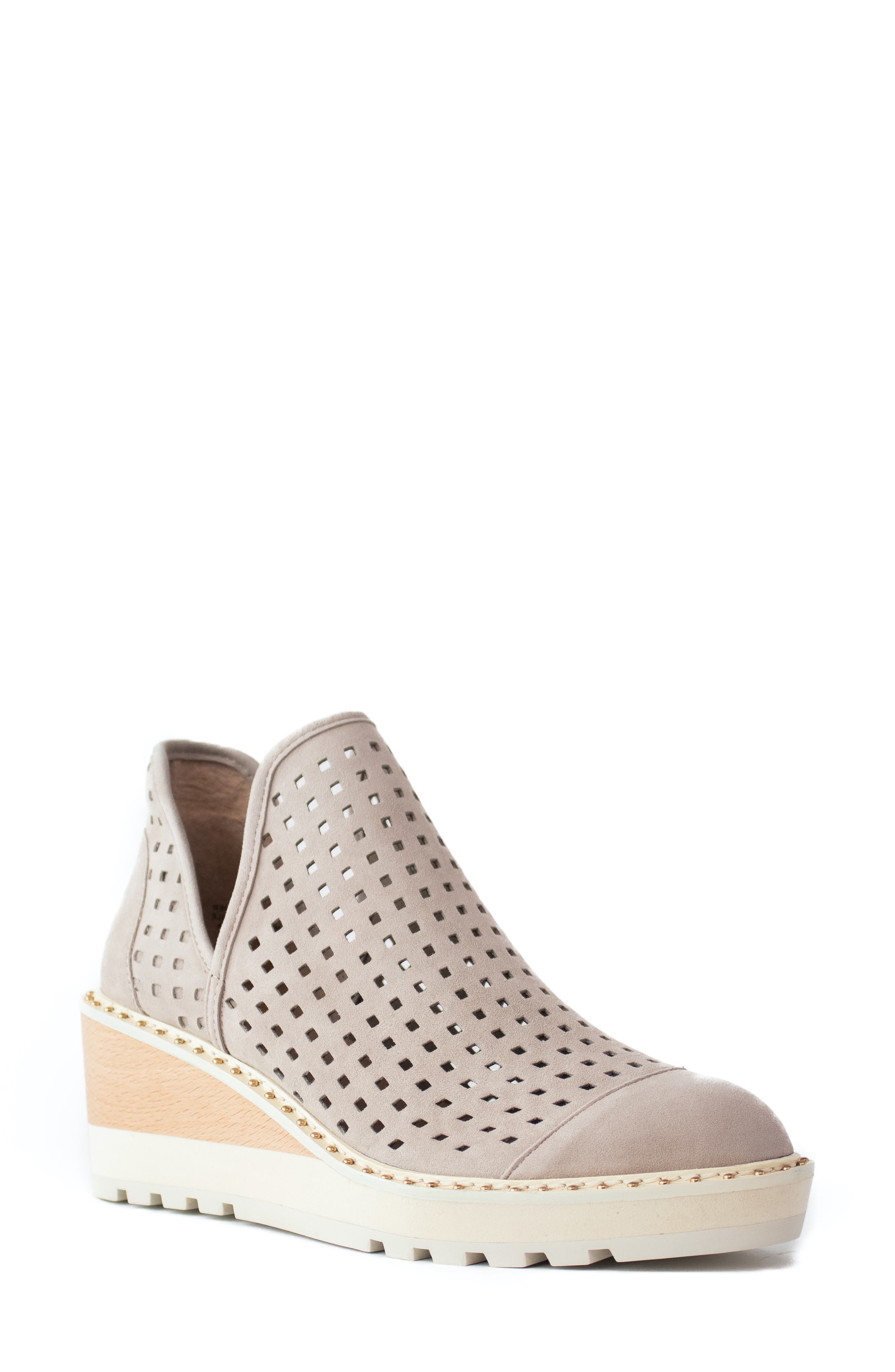 Experience comfort and style in a creamy leather, diamond-perforated bootie designed with a memory foam footbed and studded hardware at the welt.