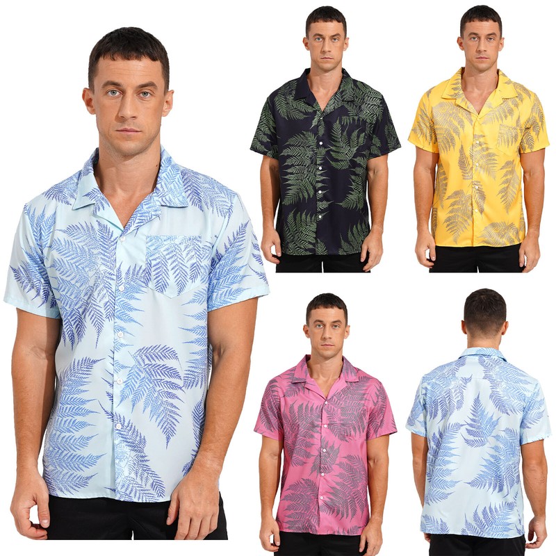 Men’s short sleeves T-shirt, contrast color turn-down collar with buttons for easy wearing, regular fit.
