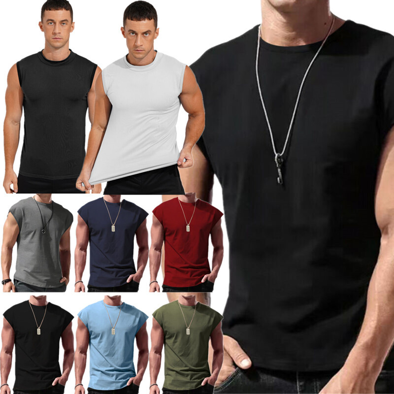 Men’s fashion muscle tank top vest T-shirt, pull on closure.