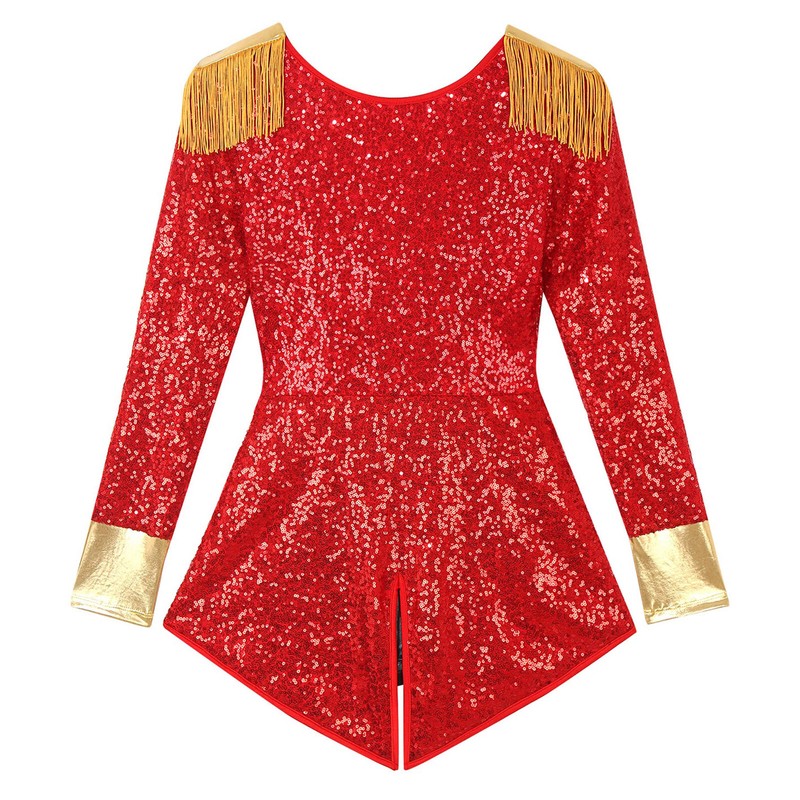 Women Ringmaster Costume Long Sleeve Sequins Bodysuit Circus Halloween Uniform