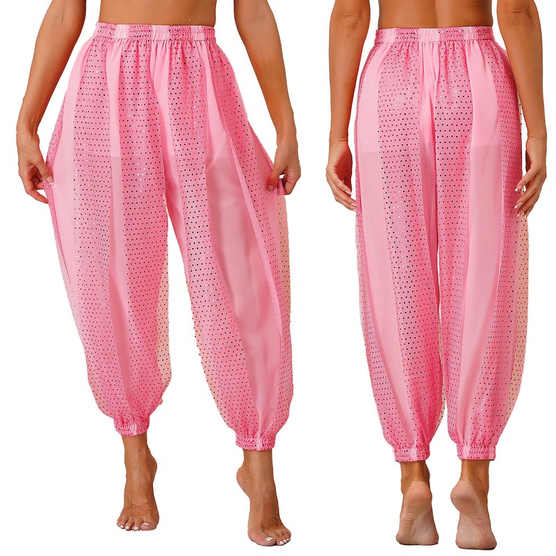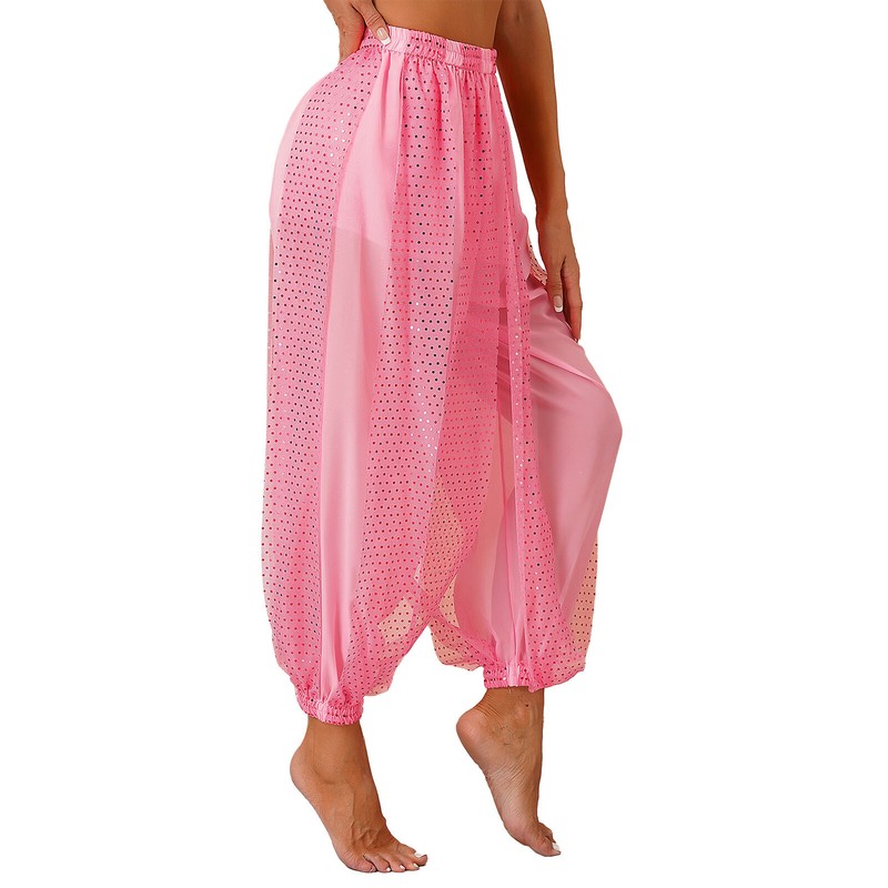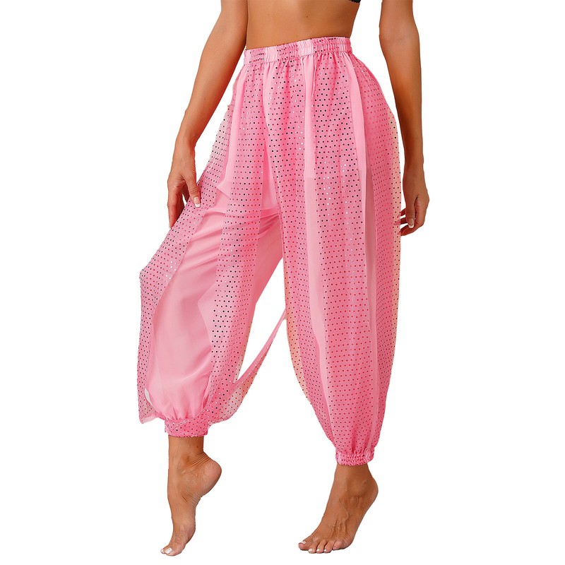 This semi see-though belly dance pants can be paired with sequin tassel crop top or hip scarf, perfectly show your graceful dance.