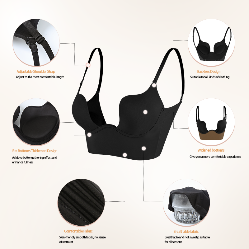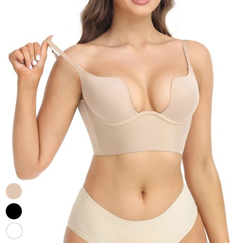 Push Up Bra Backless Women Bra Low Cut Deep U Plunge Shapewear Invisible Wedding