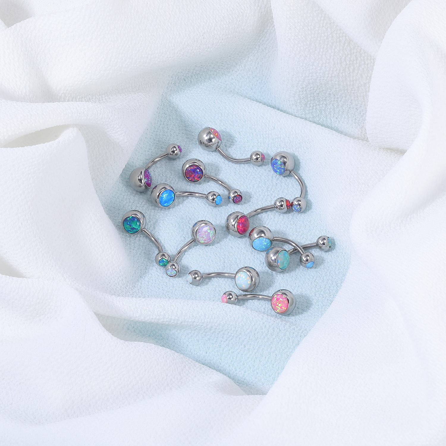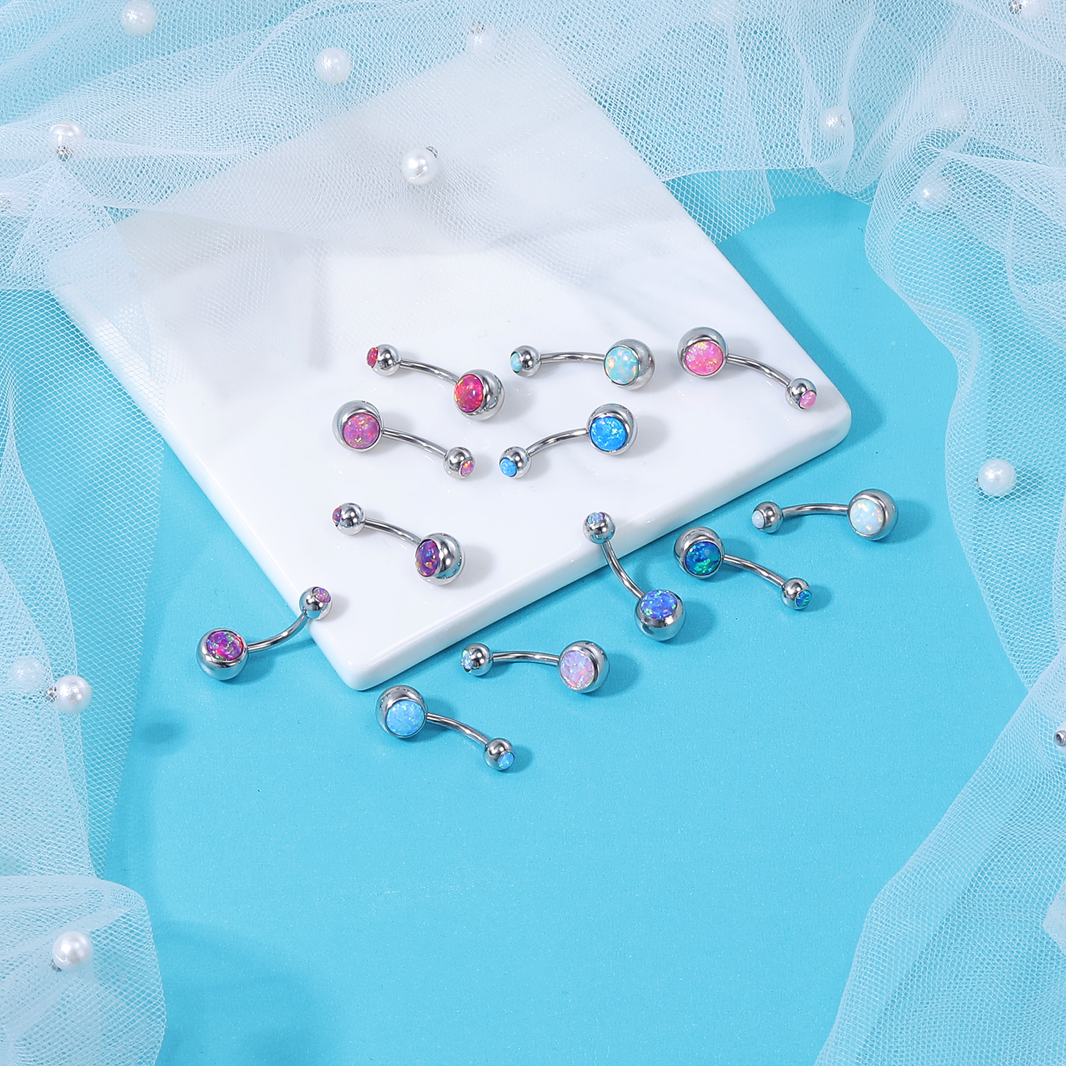 1 Pc Opal Stone Stainless Steel Belly Button Rings Woman Barbell Navel Piercing