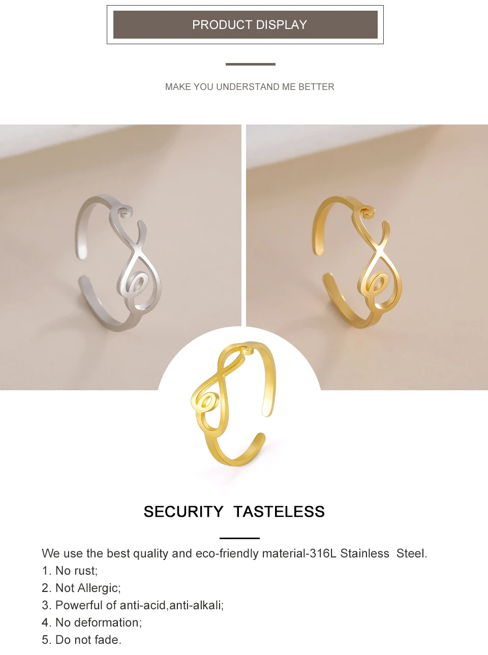 This Stainless Steel rings will not turn your skin green/black.