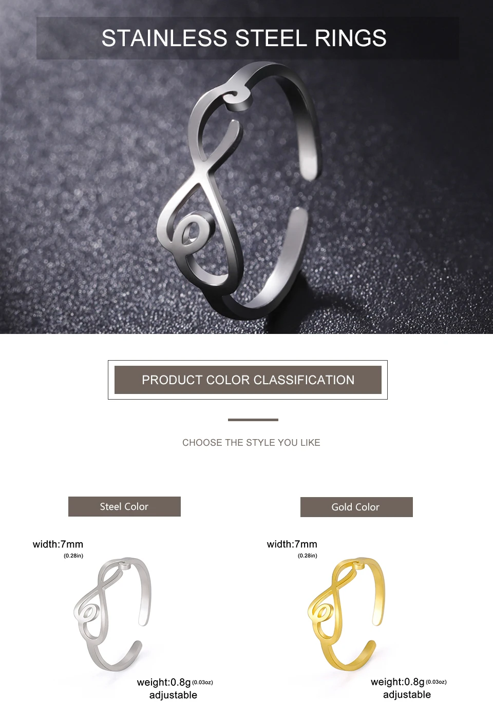 TEAMER Infinity Symbol Rings for Women Stainless Steel Adjustable Open Finger Rings Eternity Wedding Ring Fashion Jewelry Gift