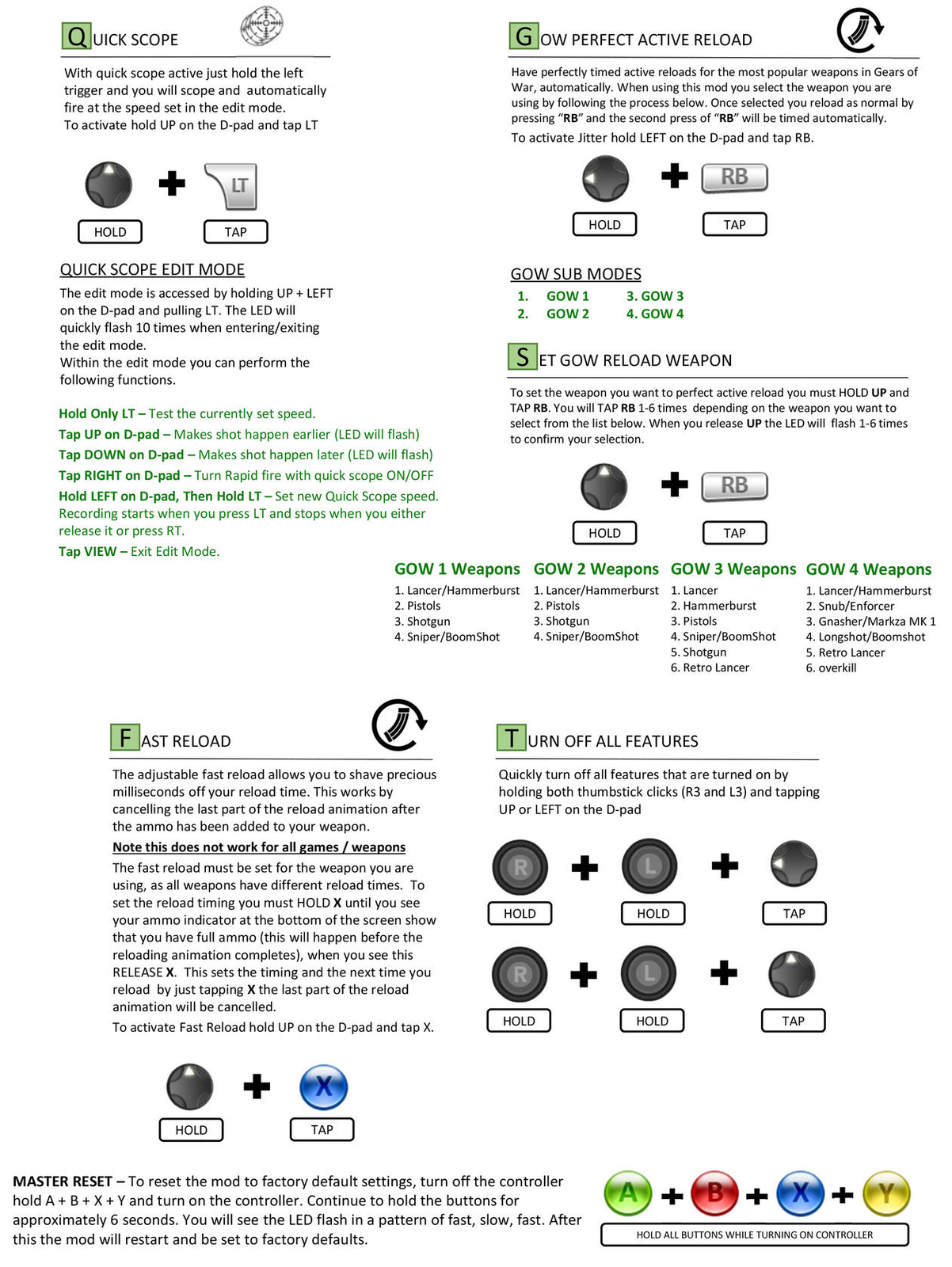 - 100% stealth controller, easily activates mods through simple button combinations.