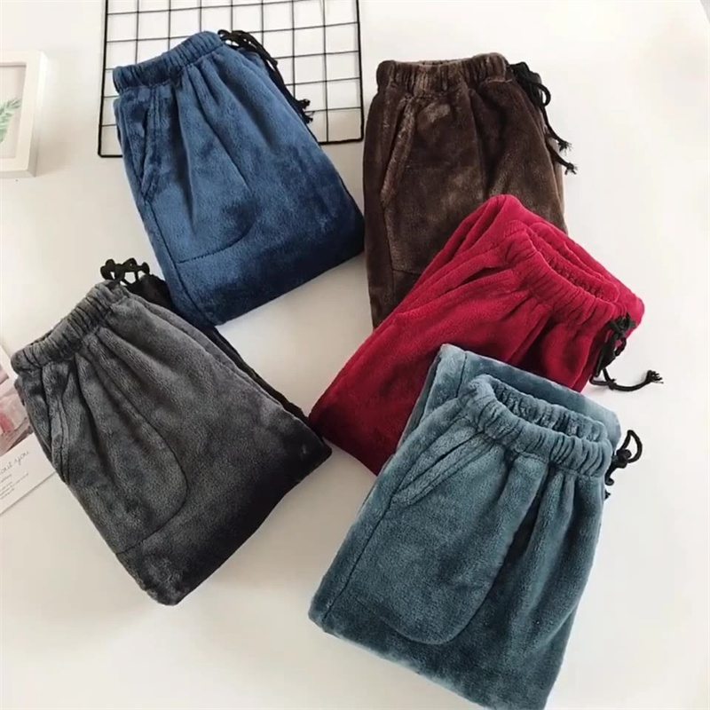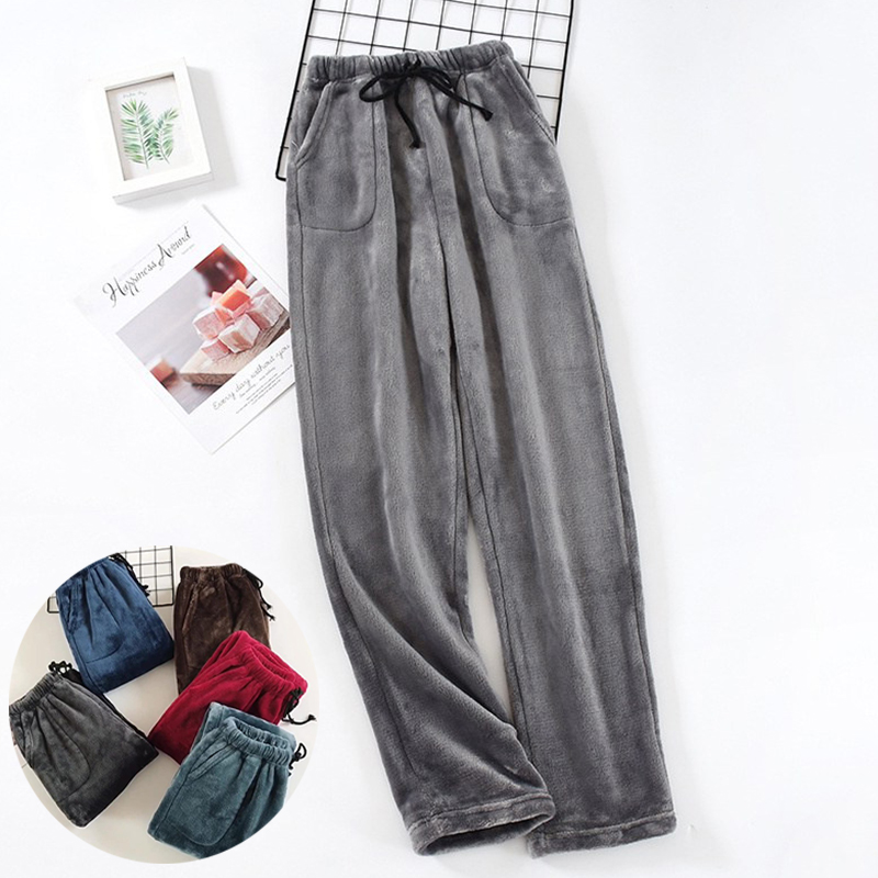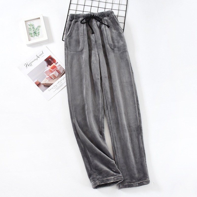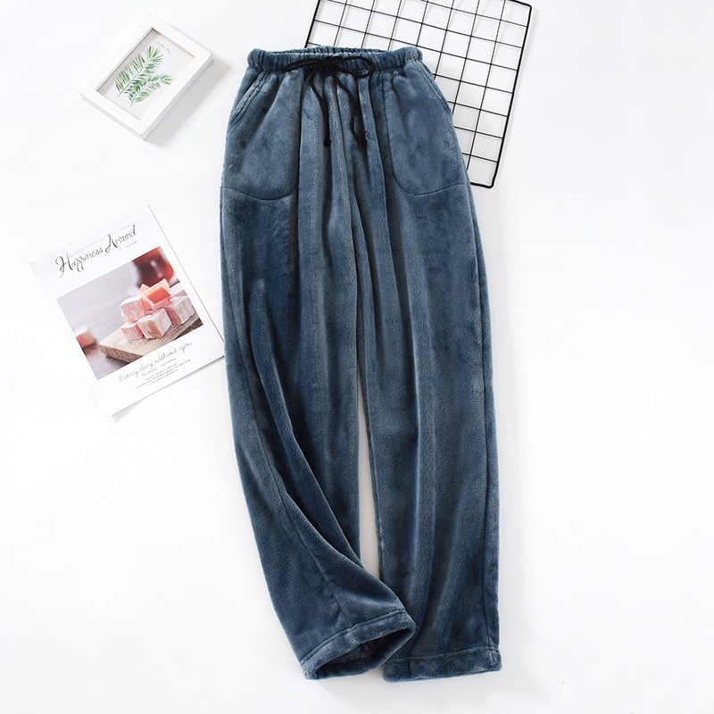 Loose pajamas men's autumn and winter thickened Flannel solid color household pants