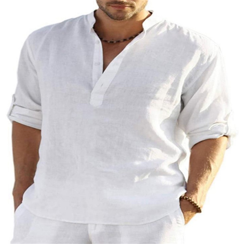 Mens Blouse Linen Shirt Shirts Top Summer Cotton Loose Casual Long Sleeve