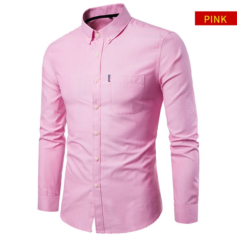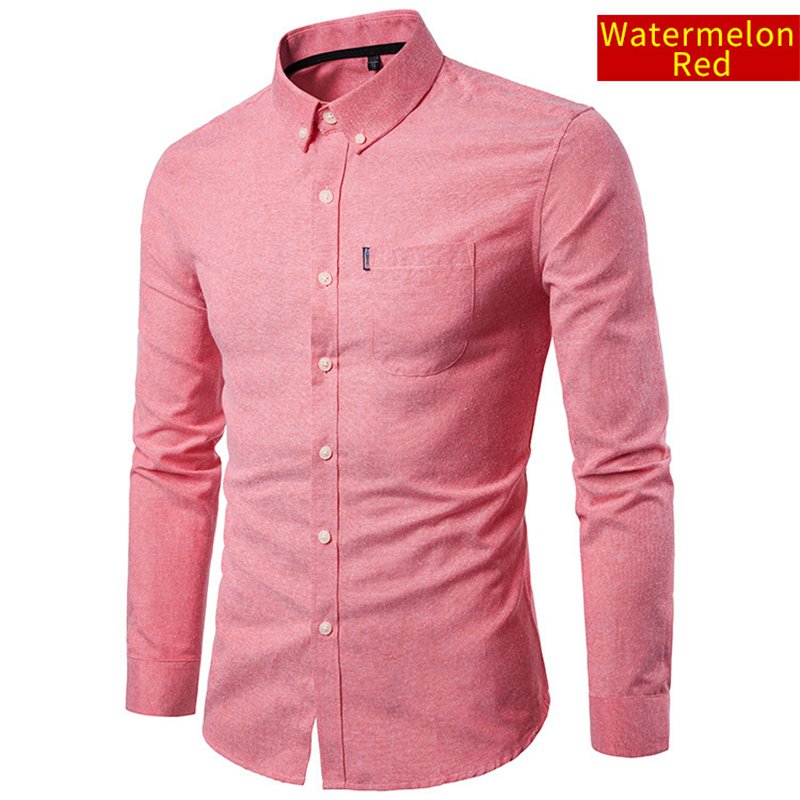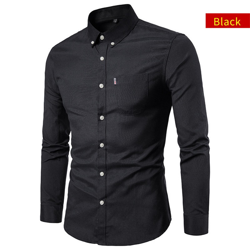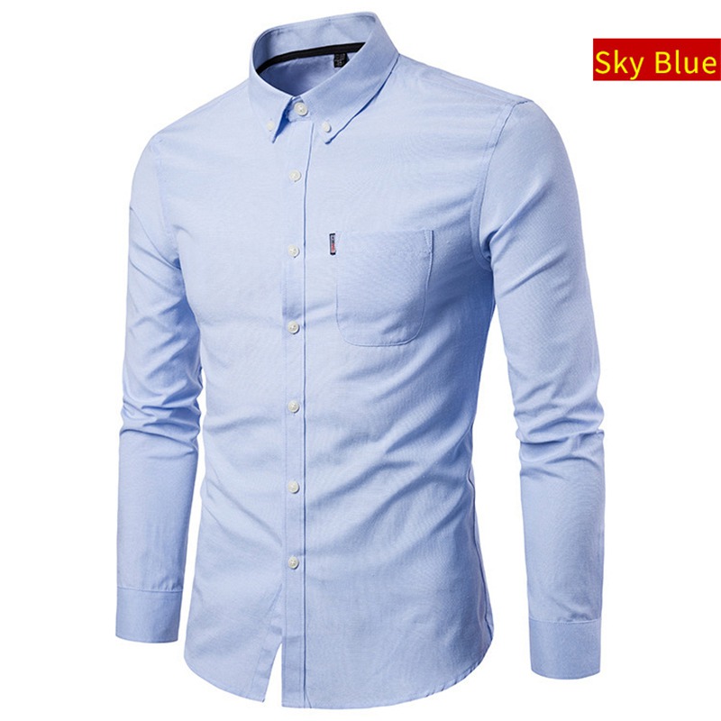 Men Long Sleeve Shirt Casual Oxford Cotton Shirt Top Button Down Slim Fit