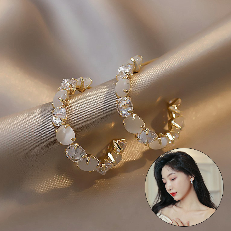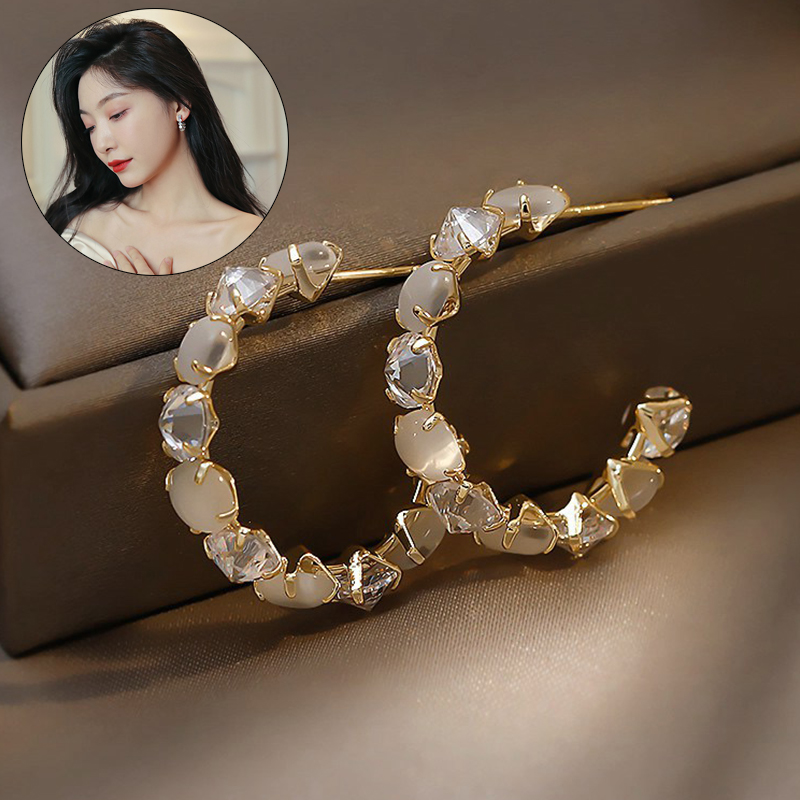 Earrings Temperament 2022 Party Girls Opals Hoop Unusual New Women Luxury