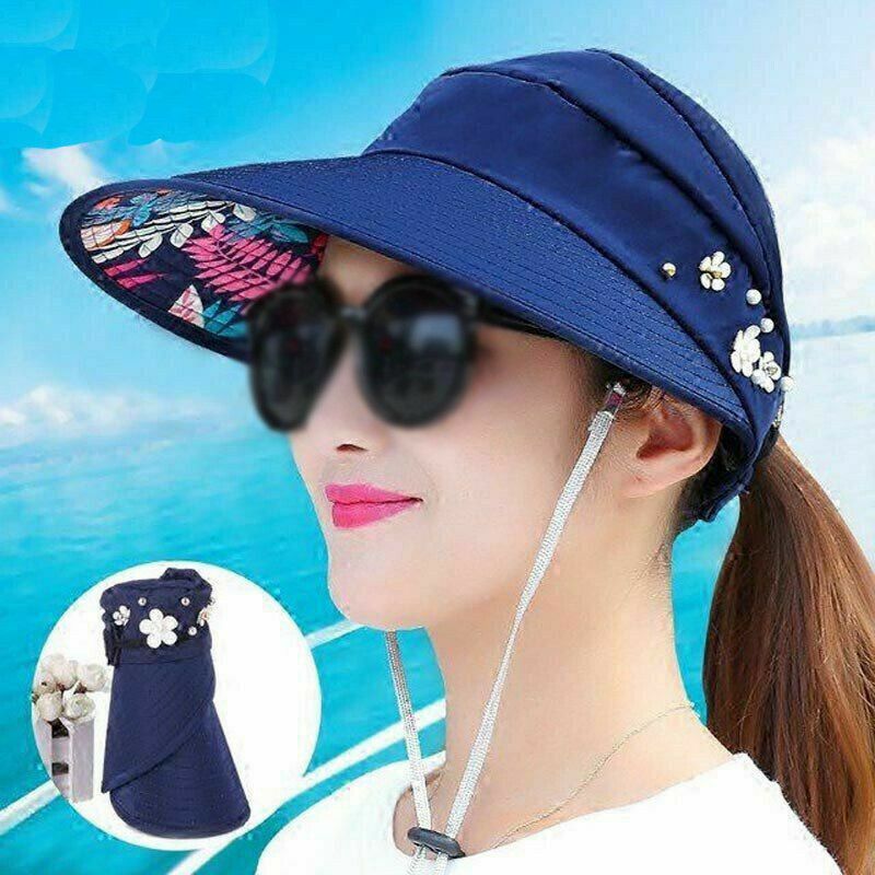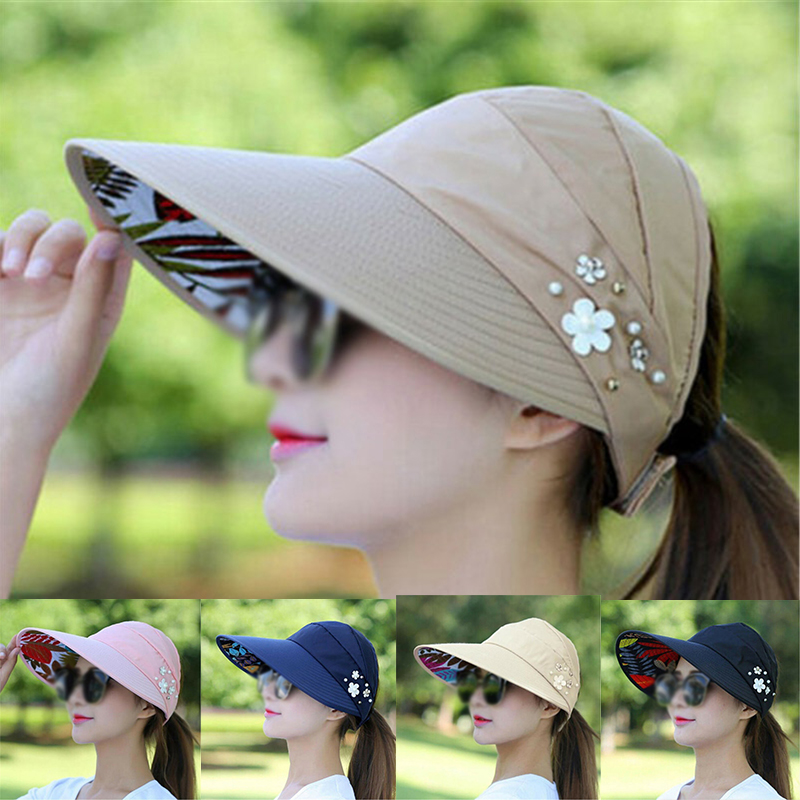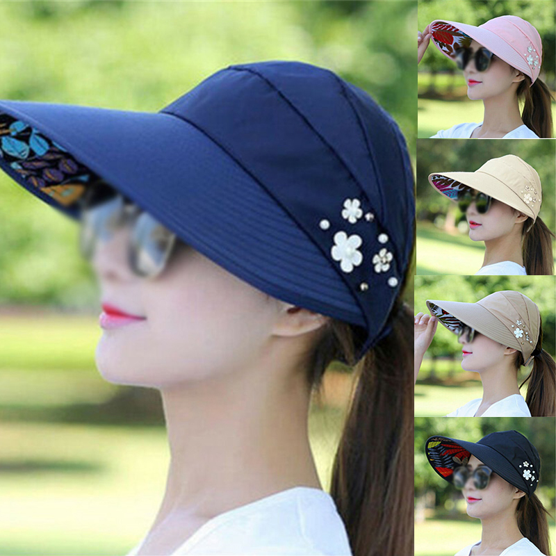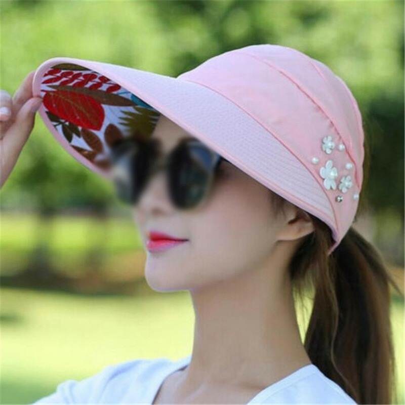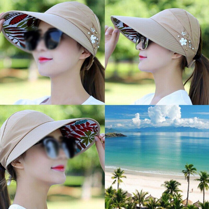 Womens Visor Hat Wide Brim Ladies Beach Foldable Summer Sun Hat Anti-UV