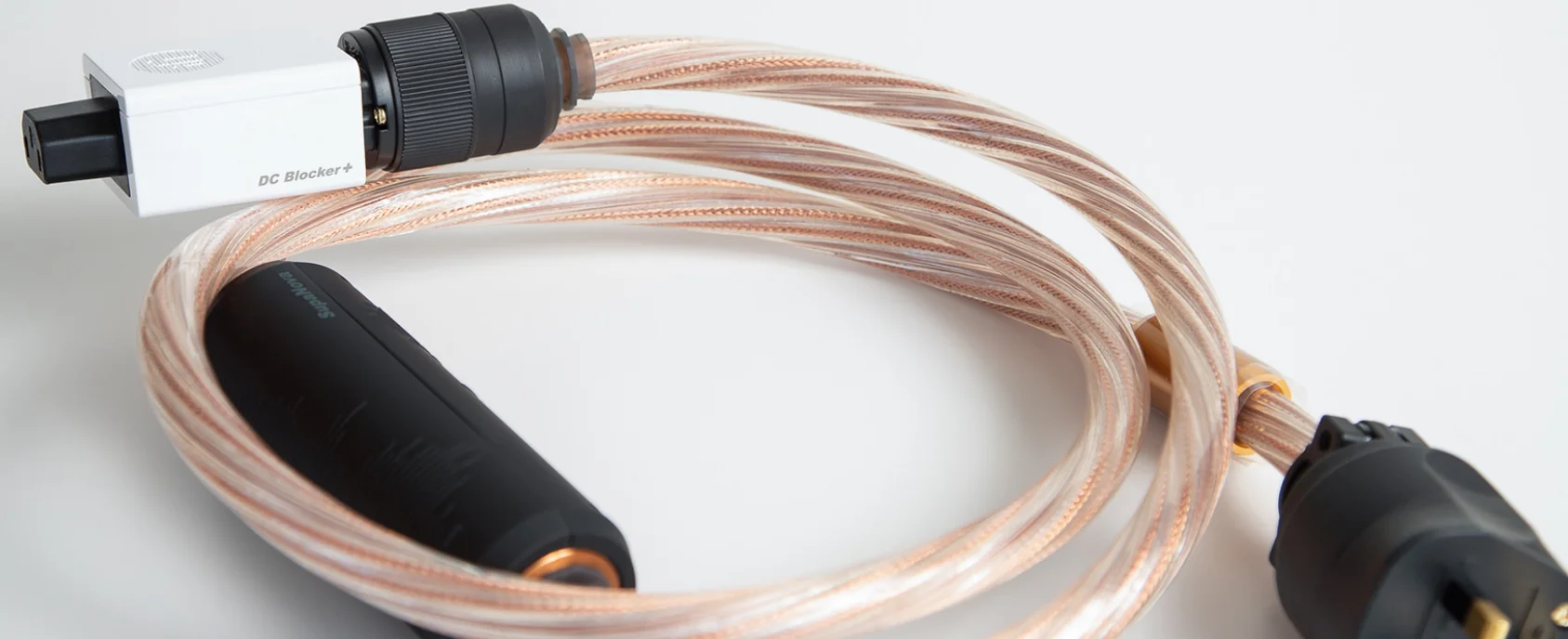 The DC Blocker+ is a smart device that, when you place it at the IEC (the rear power inlet), prevents DC from getting into the amplifier, thus eliminating transformer hum.