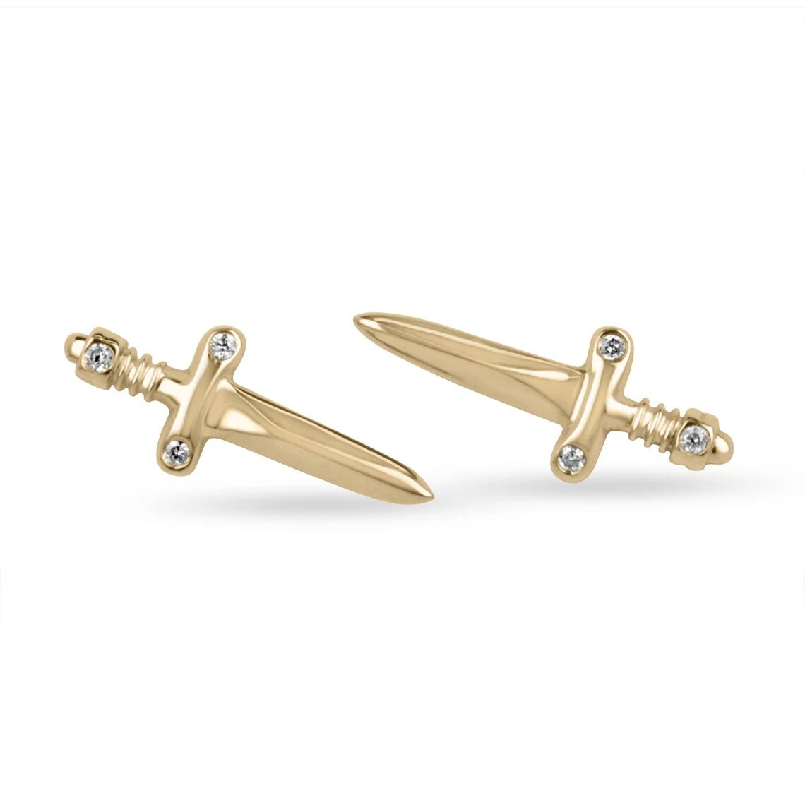 Stunning chic petite small round diamond dagger stud earrings set in 14k solid gold color of your choice. They are dainty and super cute with high-quality natural brilliant white diamonds! A perfect gift for that special someone (Sold as a pair)