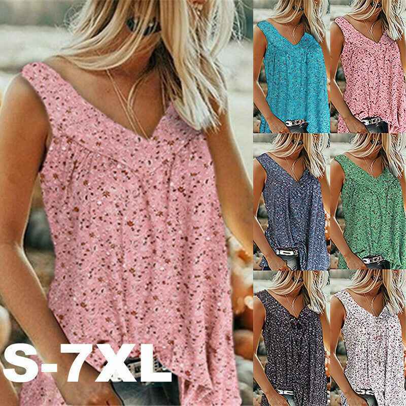 Baggy Tank Womens Floral Vest Tops Sleeveless Blouse Shirt Tee Casual Plus Size