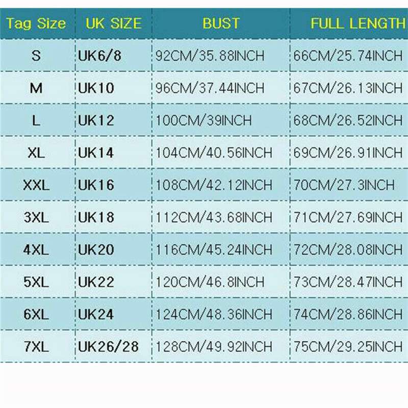 | Tag Size | UK SIZE | BUST | FULL LENGTH |