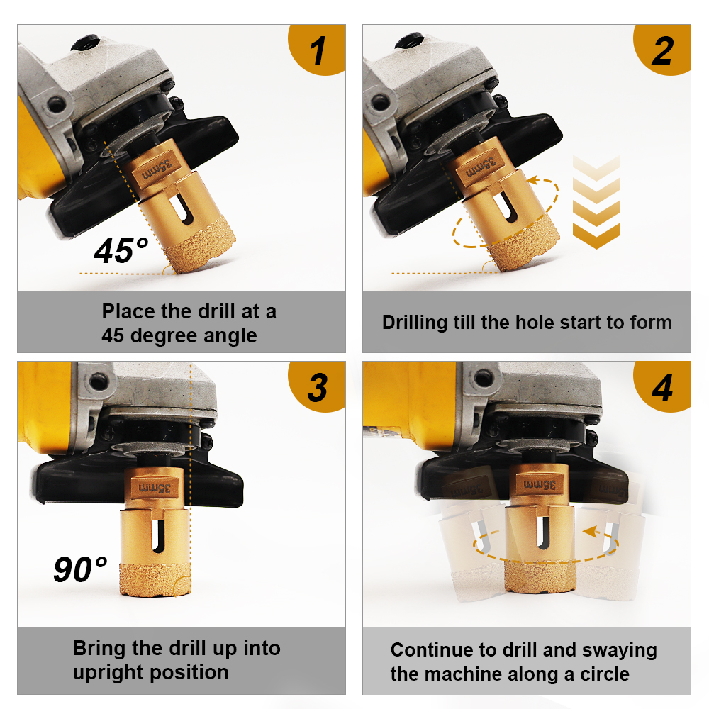 Application: Dry/wet drilling for porcelain tile, granite, marble, stone, Masonry, brick...
