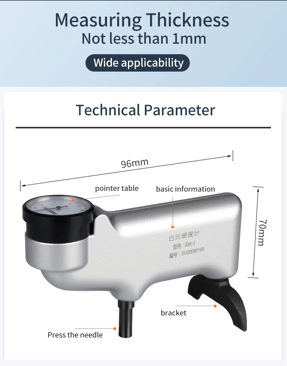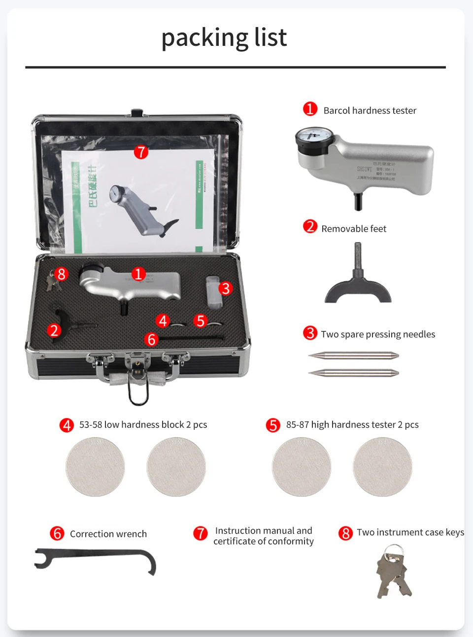 Barcol Hardness Tester is mainly used to test the hardness of aluminum and aluminum alloys, to test the hardness of other soft metals and glass fibre reinforced plastic products.