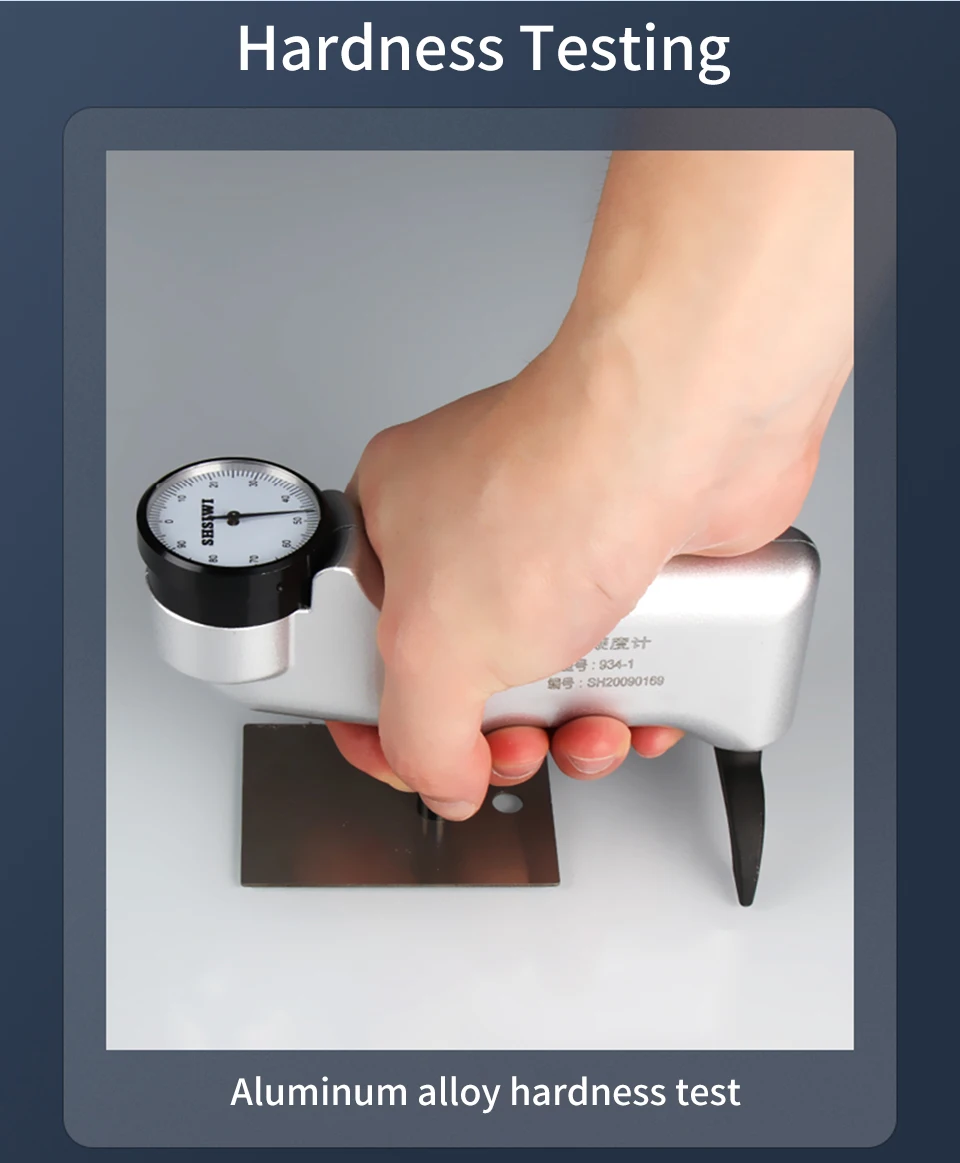 The operation is easy, quick and almost nondestructive. The test is as simple as one press. It is a convenient tool for testing the hardness of aluminum, aluminum alloys and fiber reinforced plastics, which conforms to American Standard ASTM B648.