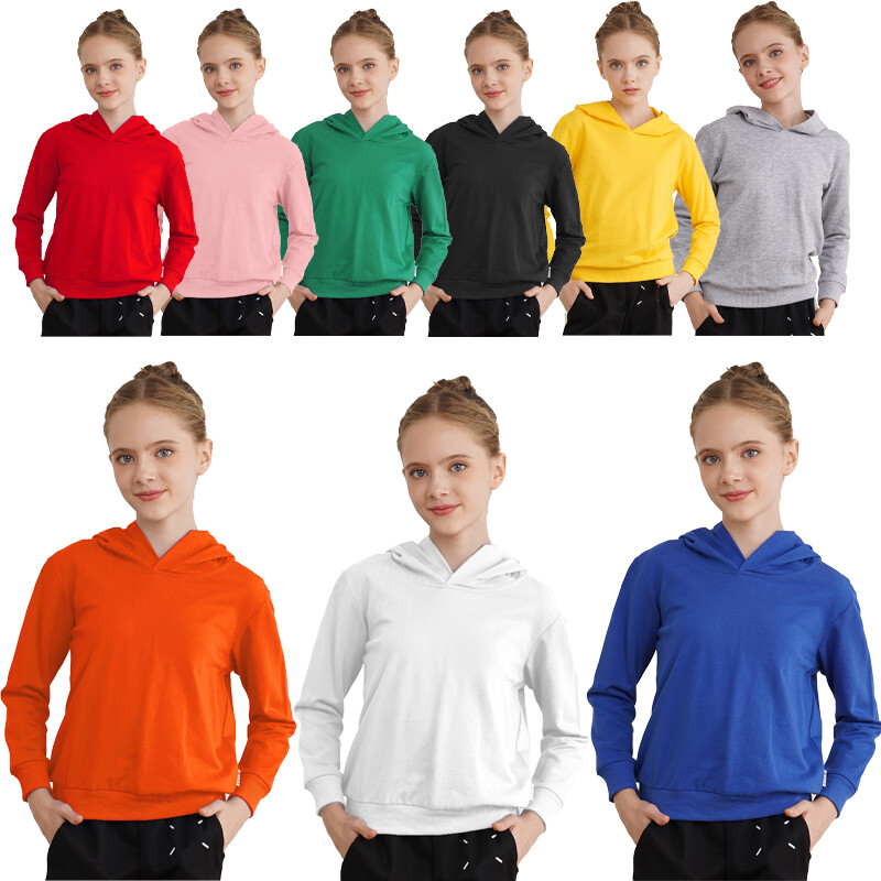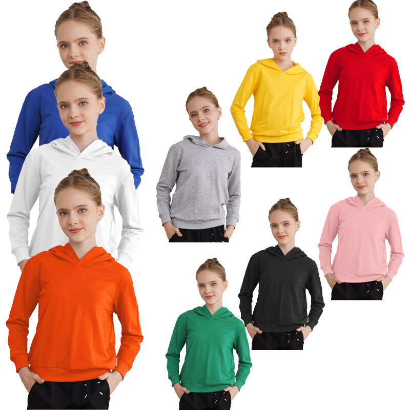Solid color hooded sweatshirt for kids is perfect for pairing with jeans, pants, sweatpants for a casual look.