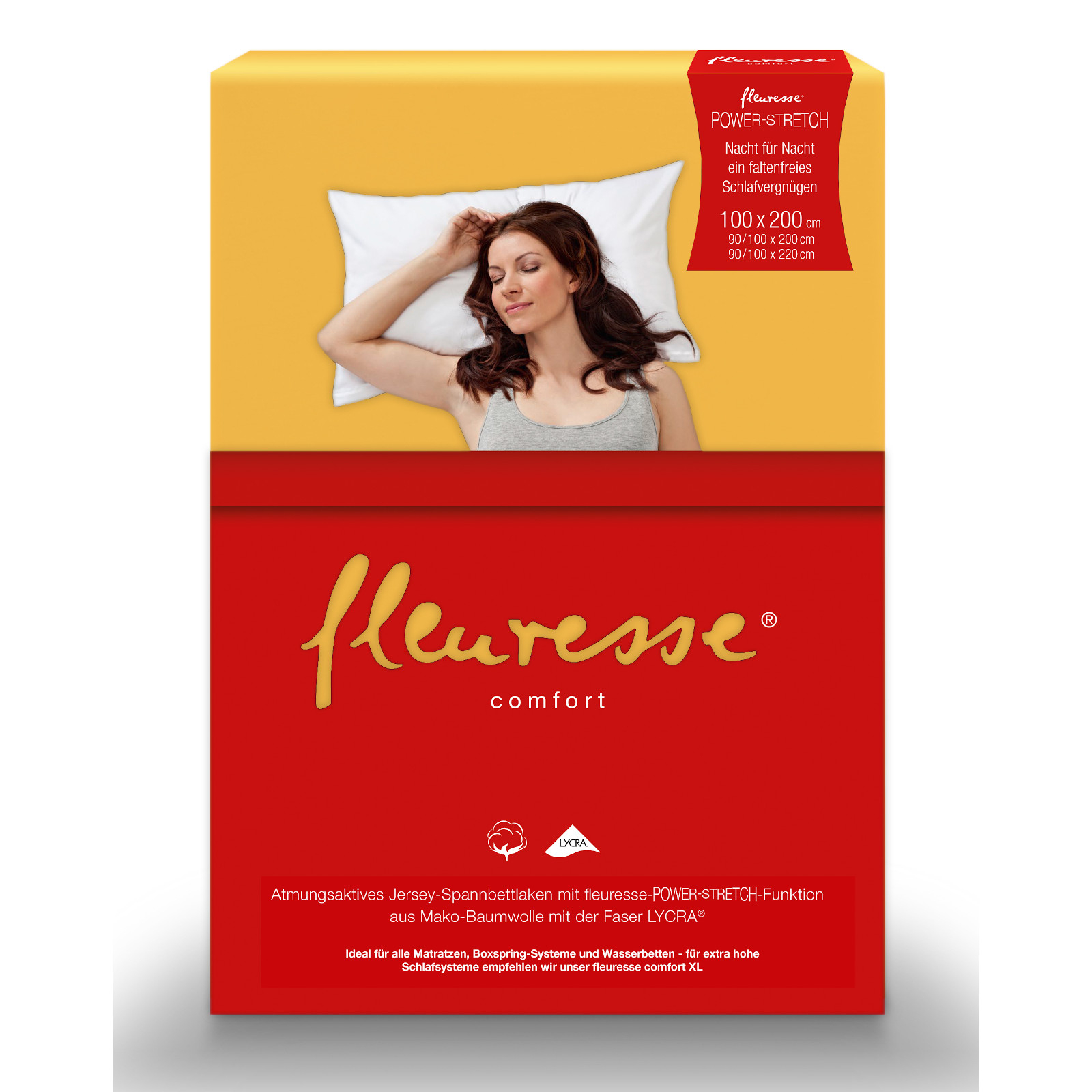 fleuresse-comfort - das exklusive Premium Comfort Spannlaken mit fleuresse POWER-STRETCH-Funktion aus Mako-Baumwolle mit der Faser LYCRA ®.