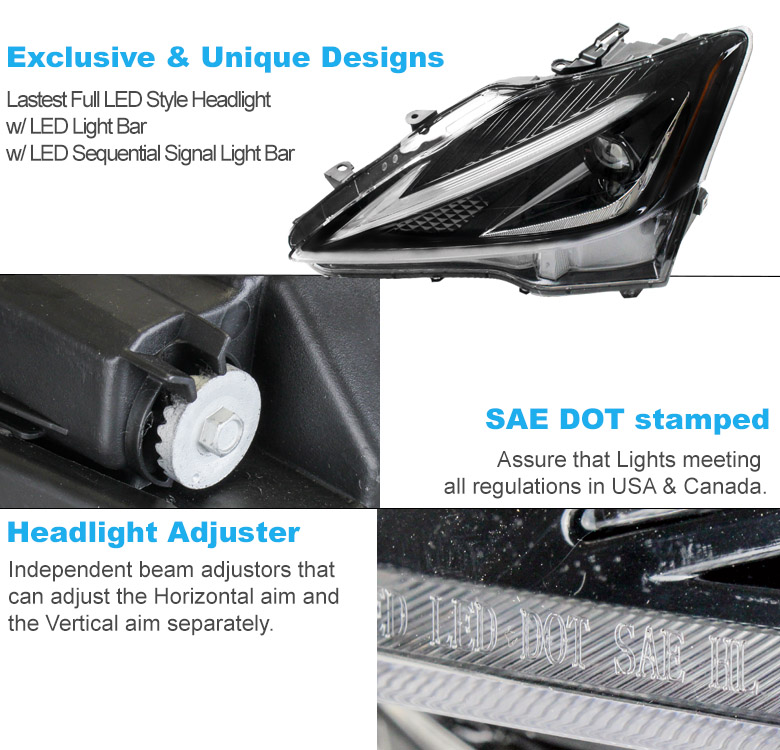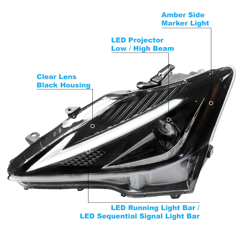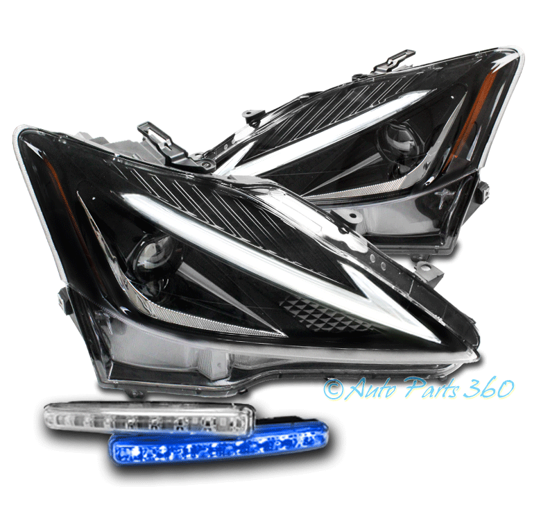 For 2006-2013 Lexus IS250 | IS350 Full LED SwitchBack Signal Projector Headlights w/6" Blue LED DRL - Black | ||||||||||||||||||||