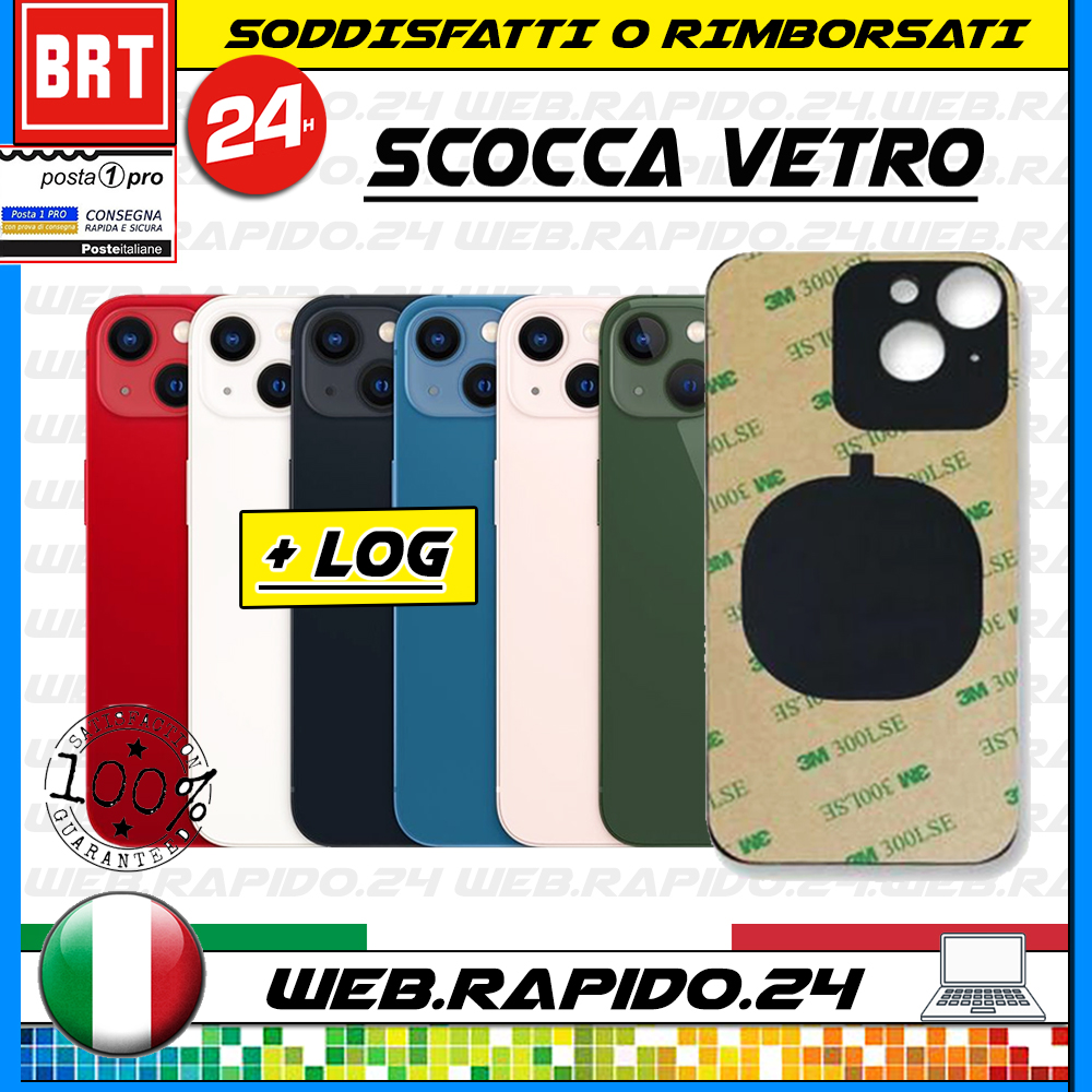 BACK COVER SCOCCA POSTERIORE VETRO+BIADESIVO PER APPLE IPHONE 13 BIG HOLE HOUSING