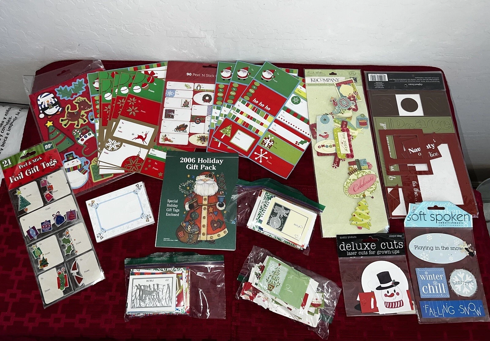 Lots of Christmas Holiday Gift Tags in Various Sizes & Shapes + Embellishments