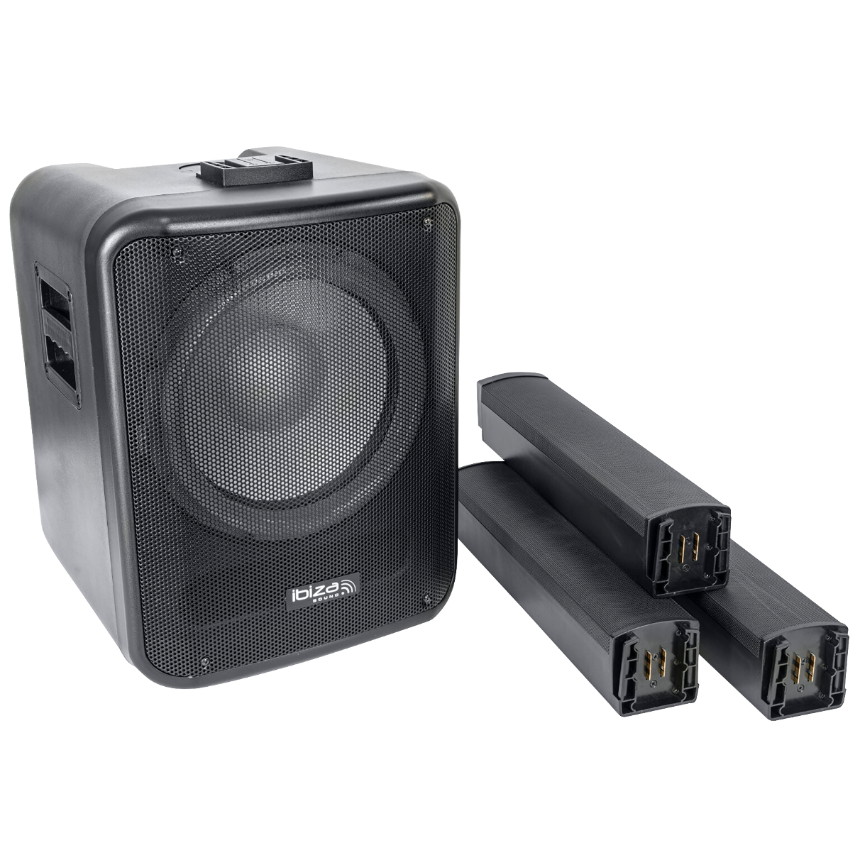 Mobile Beschallungsanlage MOBILE800 von IBIZA LIGHT+SOUND, akkubetrieben 7Ah , Musikleistung 800 Watt, Eingänge für Bluetooth, USB,microSD , Line-Eingang - und LED-Leuchteffekt-Front