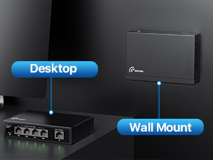 Compact size 5.12*3.46*1.18 in with desktop or wall mount methods are well-suited for different places. Save you more space and make network easier. |