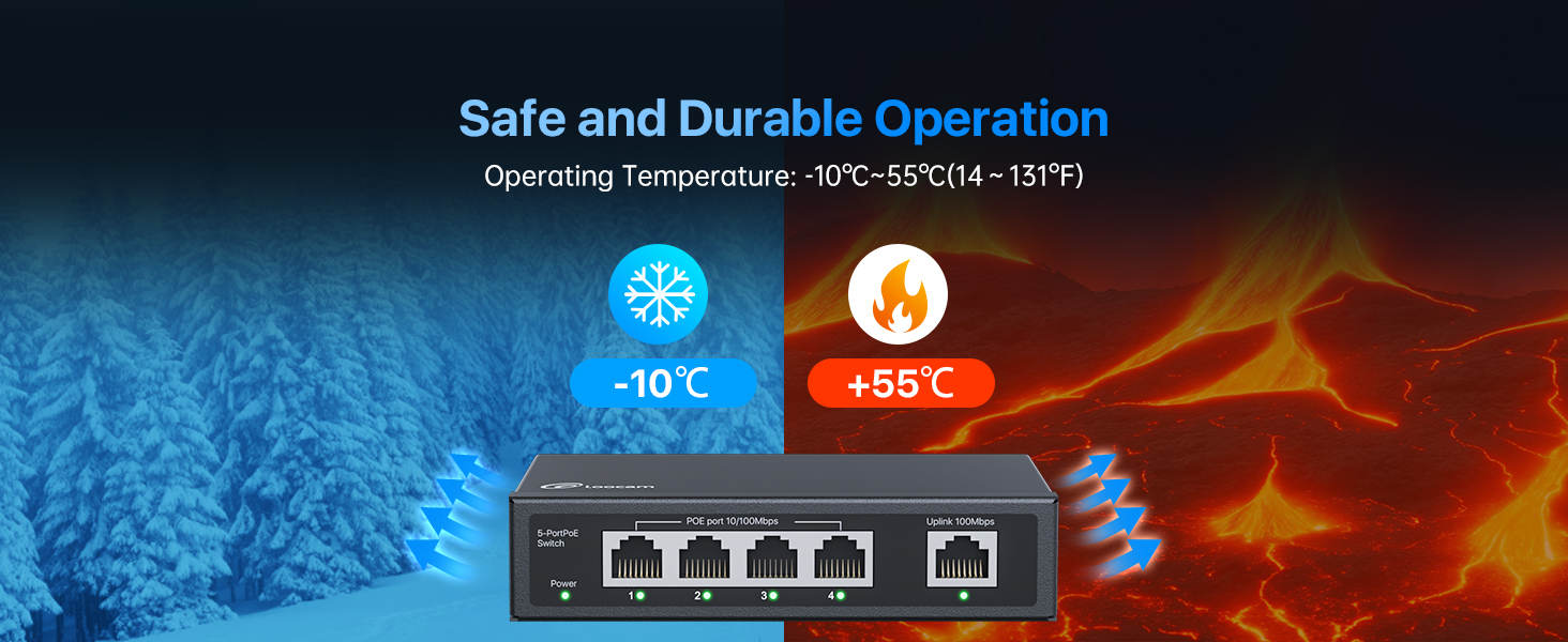Features with 4K lightning surge protection, which helps prevent sudden surges and lightning strikes from damaging poe switch and connected equipment. |