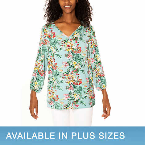 Mario Serrani Ladies' Size Medium, 3Q Sleeve Tunic Top, Blue Floral
