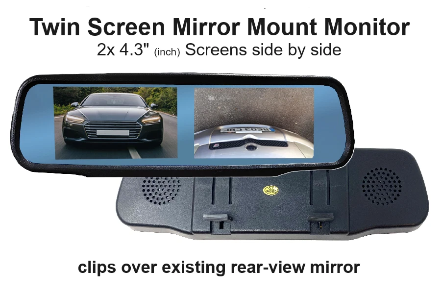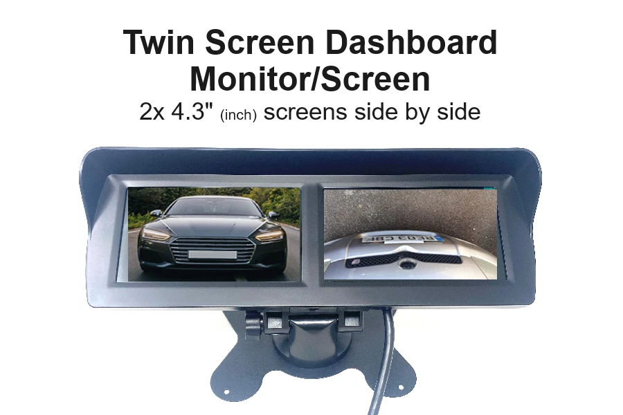 We offer a range of monitor options for connecting your dual reverse camera system up to with both dash board mounted and mirror mounted options which will either automatically swap from one video feed to the other or we have some screens that will show them side by side.