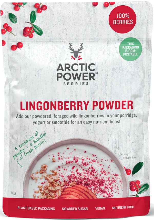 100 percent Lingonberry powder, made with wild, nutritious Arctic lingonberries from clean, unpolluted nature of Finland. Nothing added.
