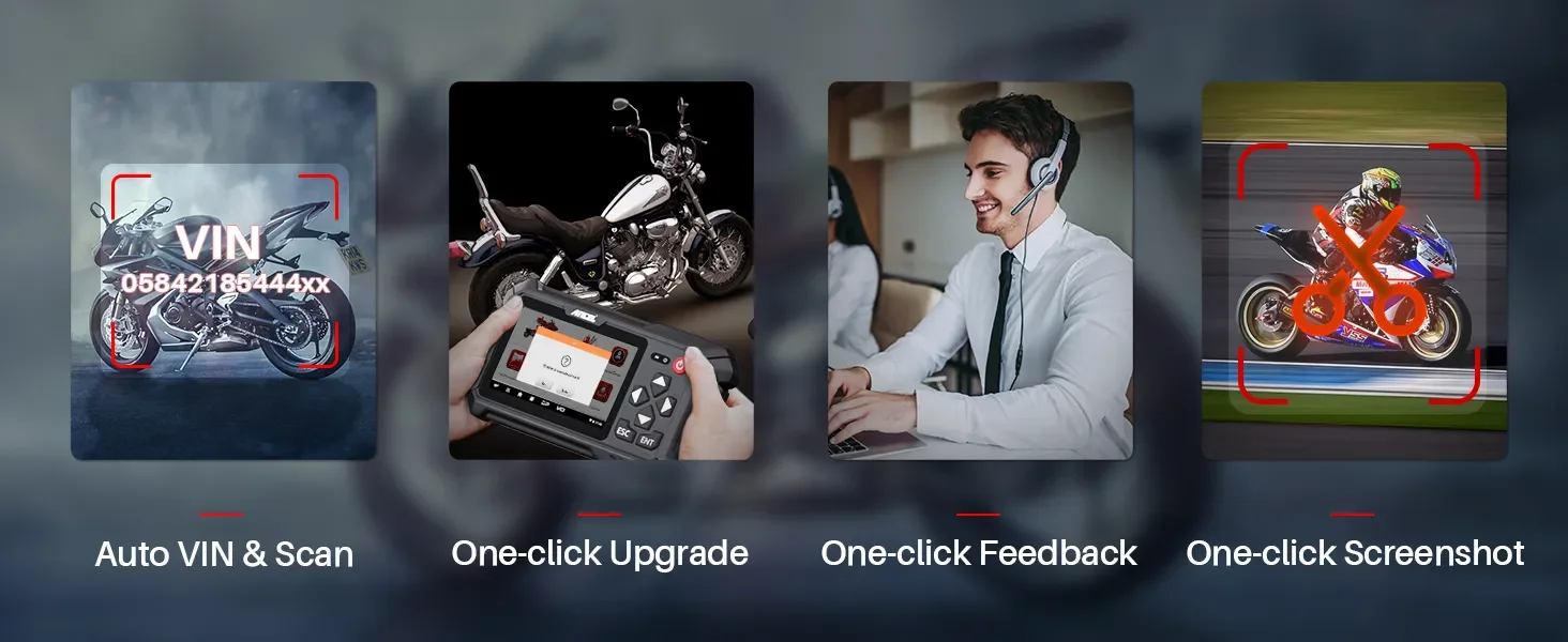 MT510 motorcycle obd2 scanner diagnostic tool is specially designed for motorcycle. This motorcycle scan tool can perform thorough diagnostics on all available systems, read/clear codes, read vehicle information, data stream display and playback, turn off warning lights such as ABS/Engine/Transmission/SAS/ESP/EPB/TPMS, etc. Allowing you to easily troubleshoot the fault problem of your motorcycle.