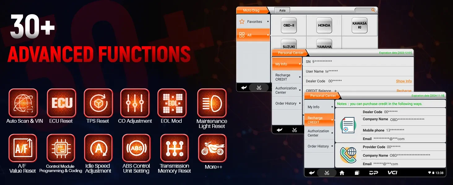 🧑🏻🎄Oil Service & TPS Reset & ECU Reset: With the MT510, you can maintain your BMW motorcycle's optimal performance. It can reset the oil service reminder, calibrate the TPS sensor for better throttle response, and reset the ECU to resolve issues related to fuel mapping, ignition timing, and other performance parameters.
