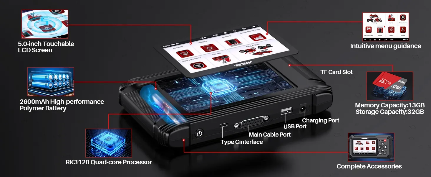Ancel MT510 Motorcycle Scanner Full System Diagnostic Tool Support Read&Clean Fault Codes
