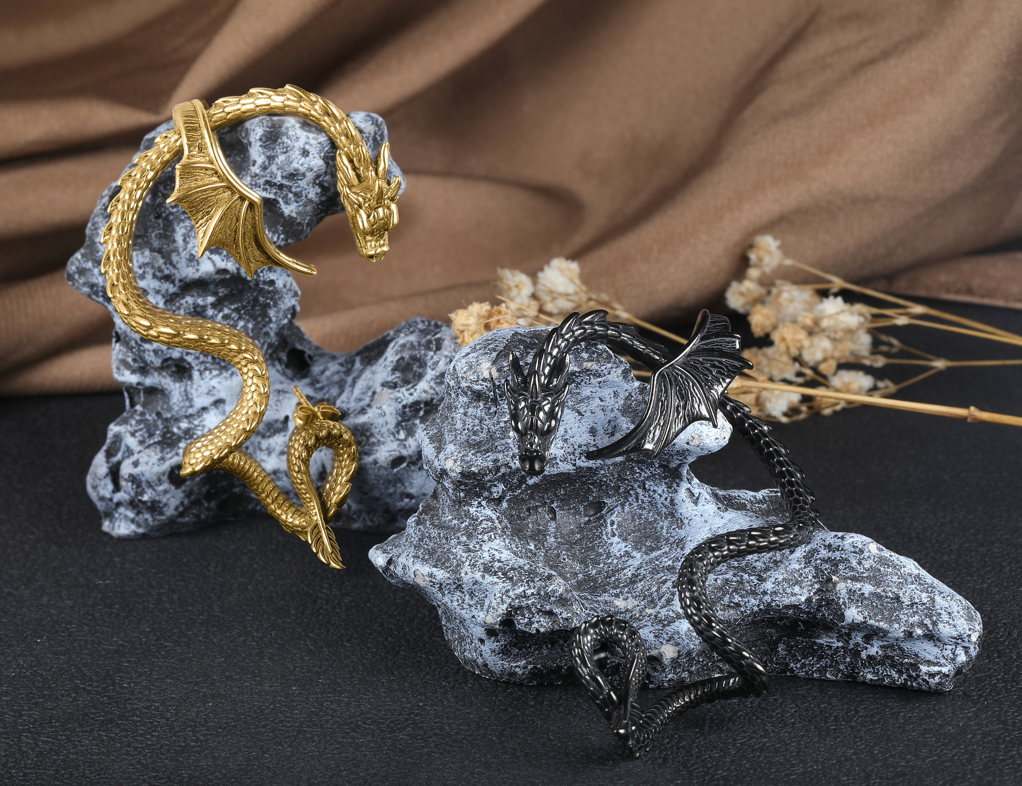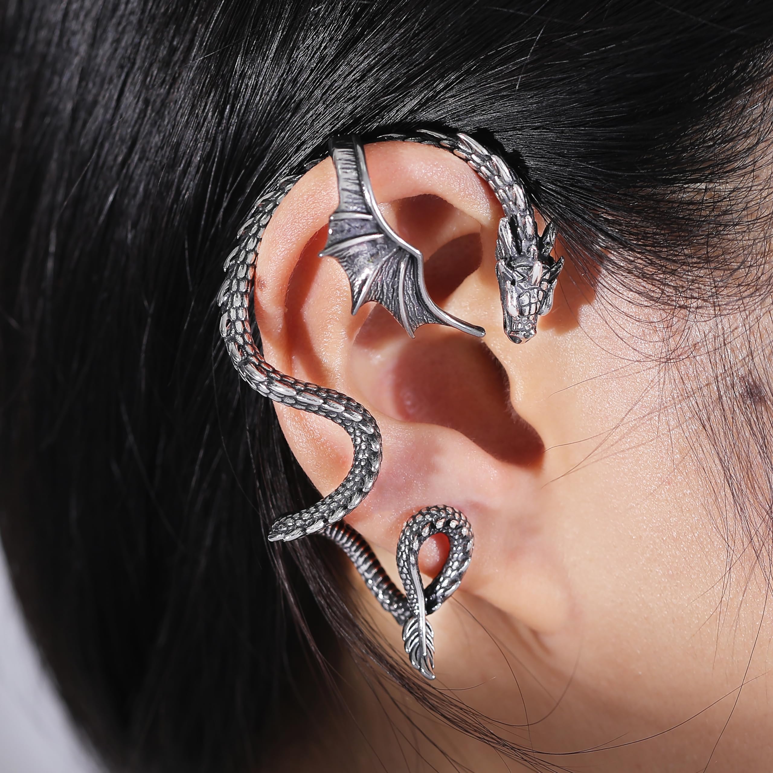 18g Stainless Steel Dragon Earrings Retro Punk Gothic Stud Earring for Women Men