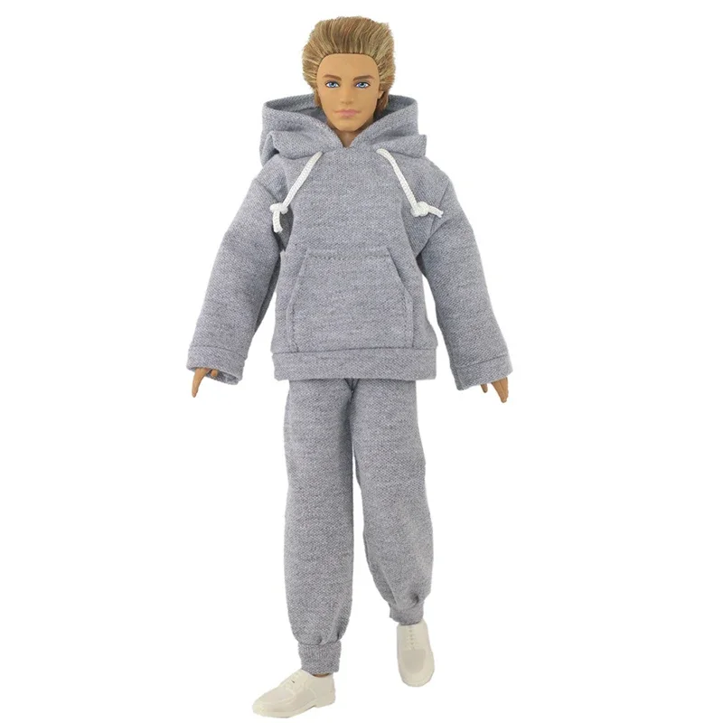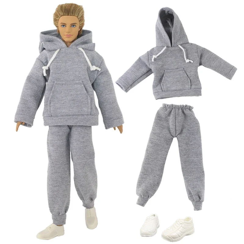 Grey Hoodies Trousers Clothes Set For Ken Boy Doll Outfits White Shoes Casual Warm For Barbie Boyfriend Ken Doll Accessories