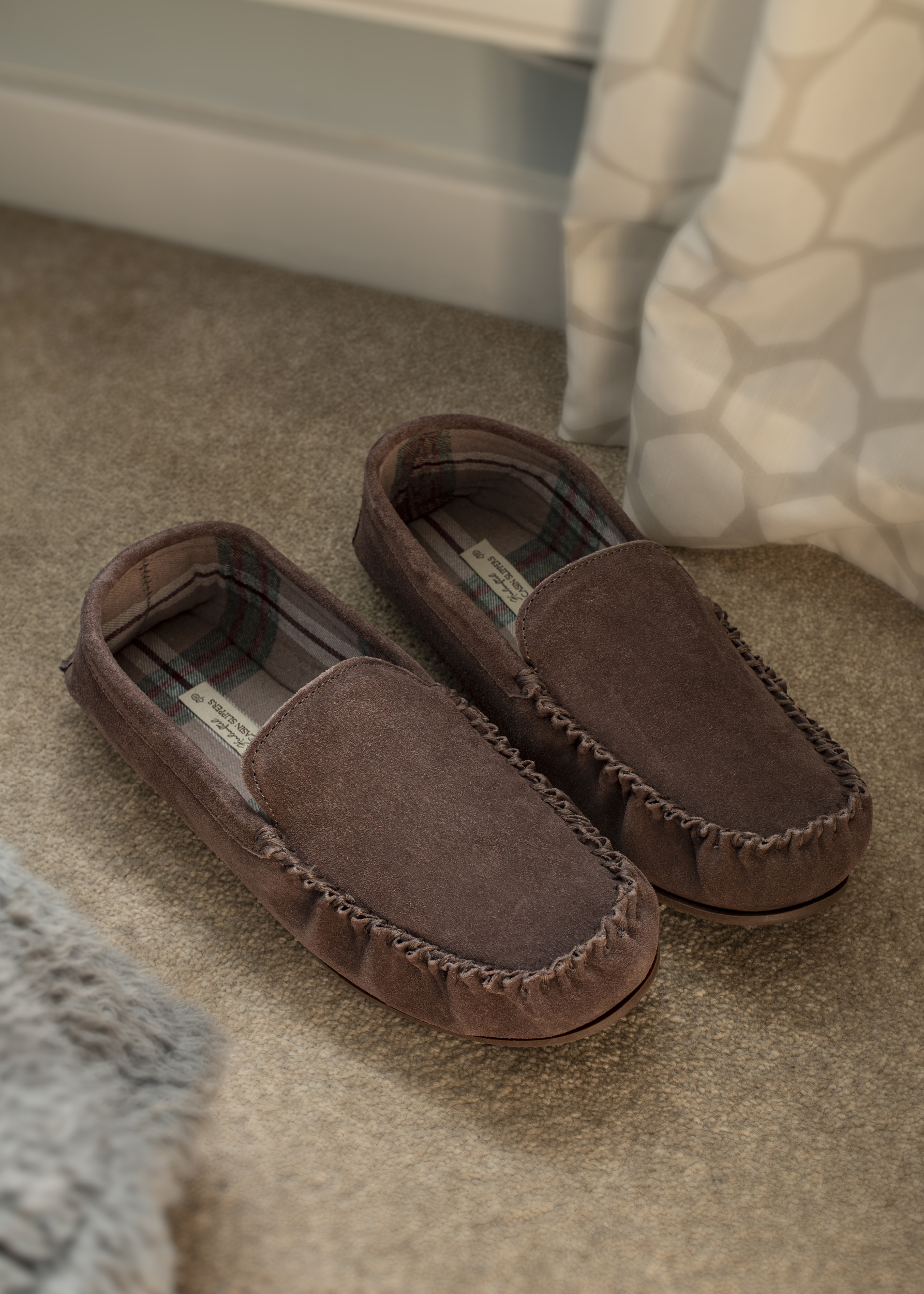 Experience unmatched comfort and style with Lambland's best-selling Men's Sheepskin Suede Outer Moccasin Slippers. Handcrafted to perfection, these slippers are a testament to exceptional craftsmanship. The sheepskin suede outer not only adds a touch of sophistication but also guarantees long-lasting durability. With a cozy cotton lining, these slippers offer optimum breathability and comfort, allowing your feet to breathe even during extended wear.