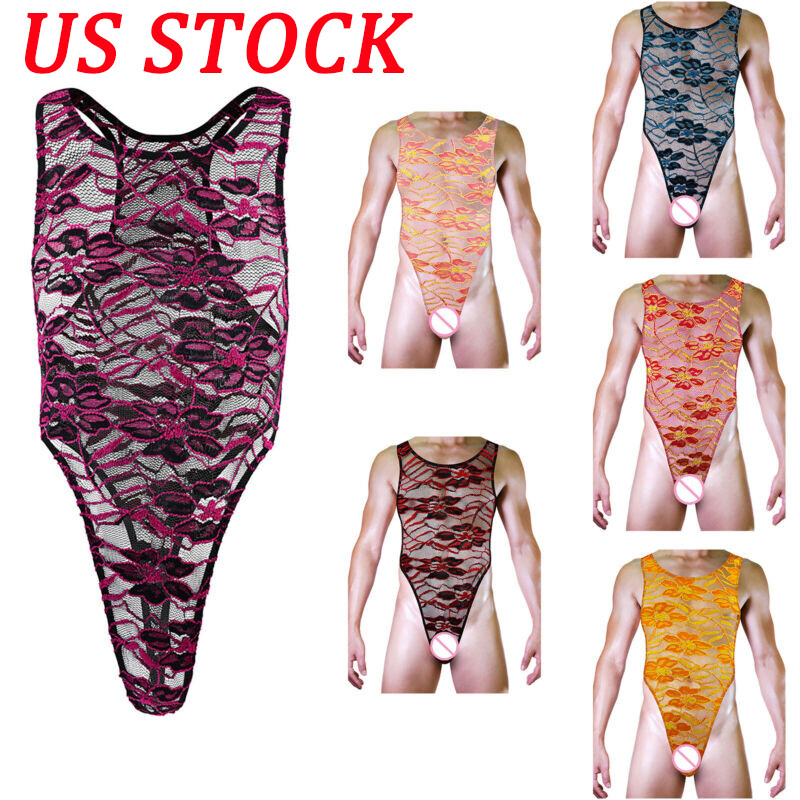 Men Satin Lingerie Suit Sissy Nightwear Sheer Mesh Patchwork Adjustable Spaghetti Strap Bra Tops with Briefs Thongs.