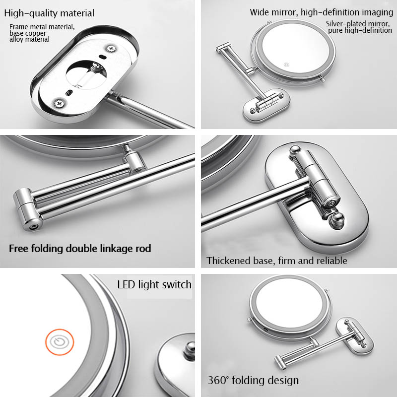 The 360° swivel bathroom vanity mirror design allows you to fix the mirror at any angle you want. It can be folded against the wall when not in use, saving space.