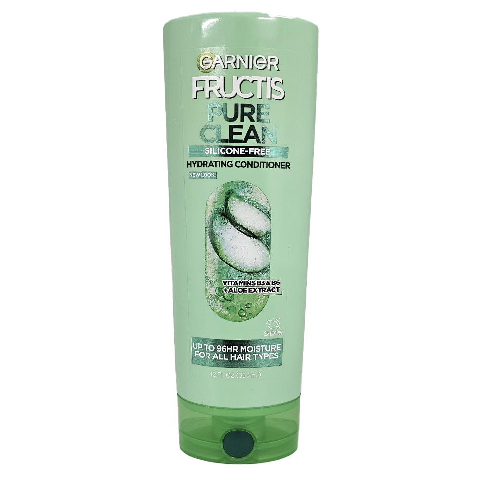 Garnier Fructis Pure Clean Hydrating Conditioner with Aloe Extract, Garnier Fructis Pure Clean Fortifying Conditioner, For All Hair Types, It. Cleans. Trust Us. Your new favorite Pure Clean Shampoo and Conditioner is for all hair types and provides the freshest clean for everyone. Infused with Aloe Extract and Vitamin E, you'll have healthier looking hair at every wash. Free of the bad stuff like parabens, silicones, and dyes! Add the detangler to your routine to control frizz and untie knots. Up to 96hr of non stop freshness for hair and scalp. COMMITTED TO MAKING GARNIER A GREENER BEAUTY