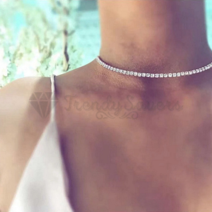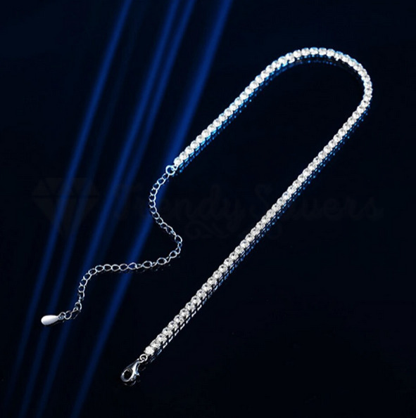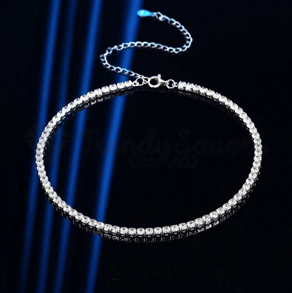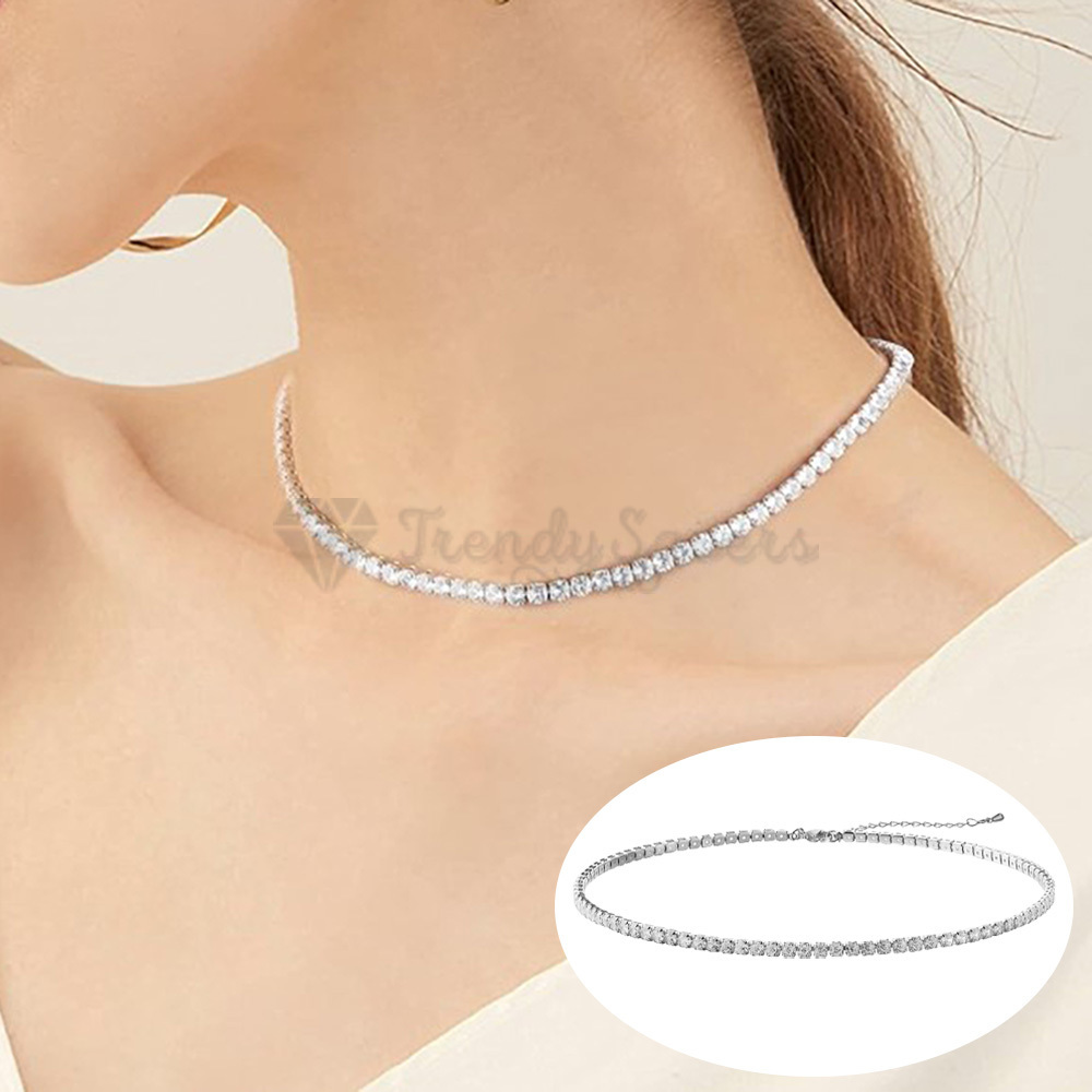 Diamond Iced Out Woman Silver Tennis Choker Chain Necklace Gift Sterling Silver