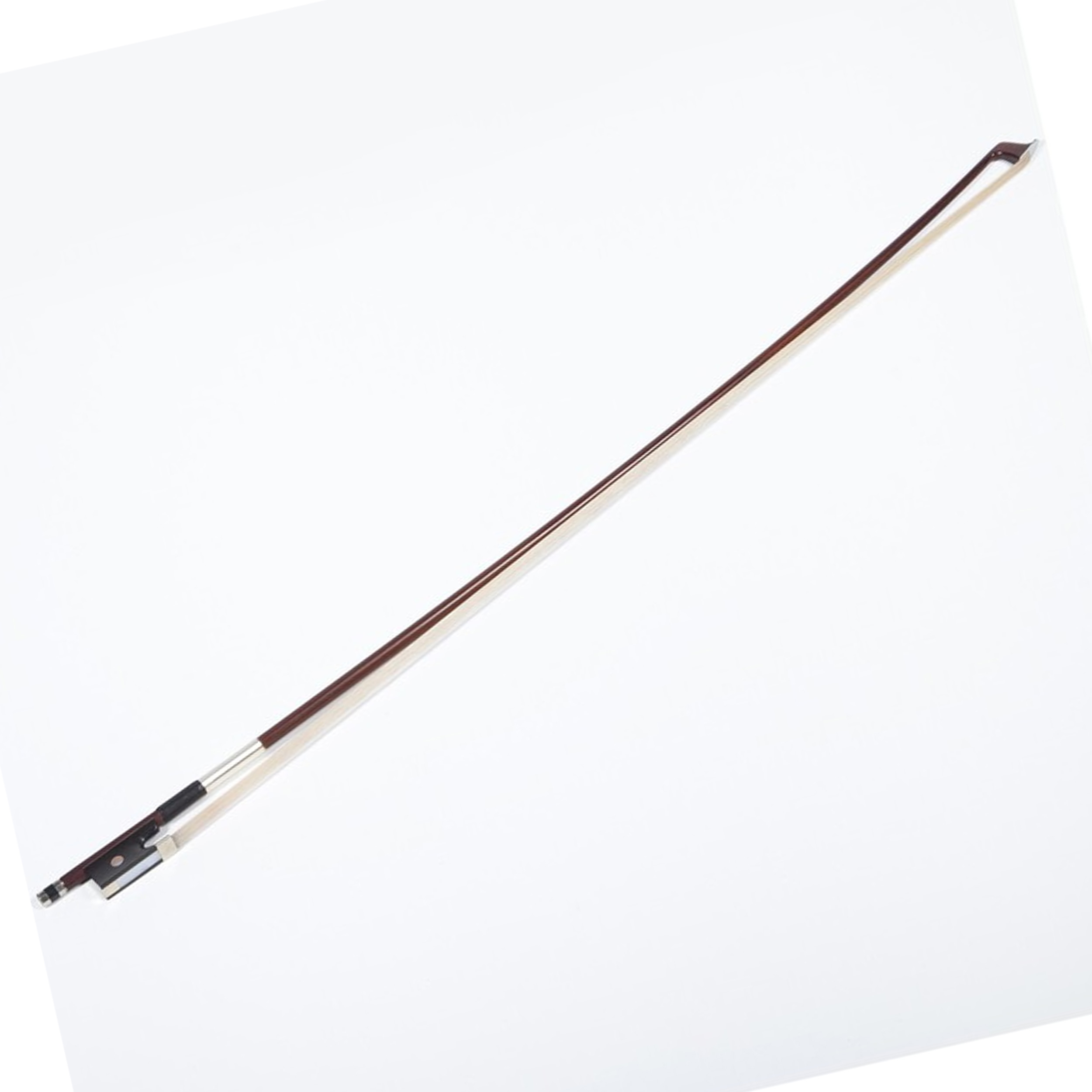J. Remy bows offer the best of materials and workmanship. Round stick with nickel-silver winding and leather grip. Full-lined, nickel-silver mounted ebony frog with inlaid eye.