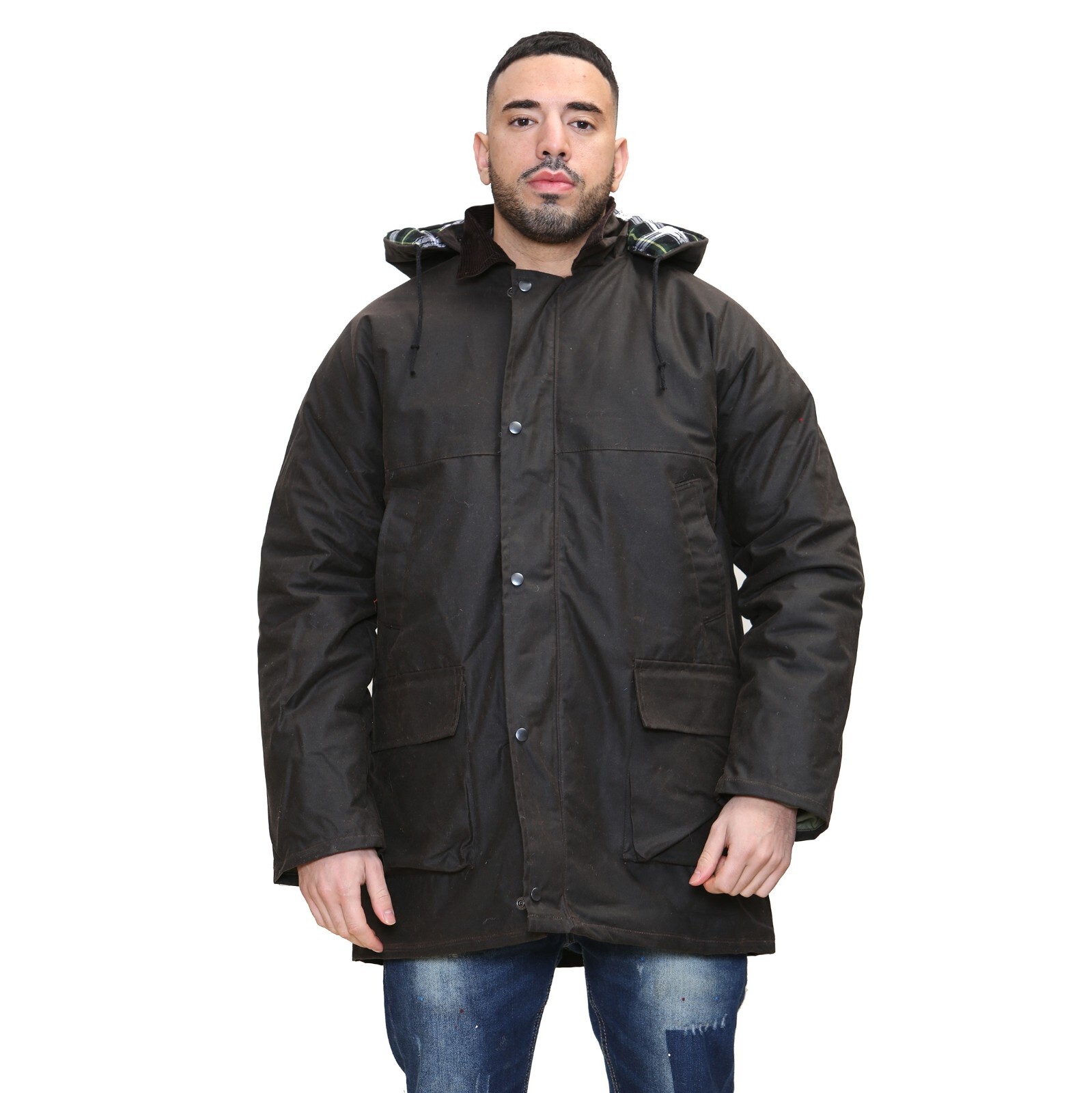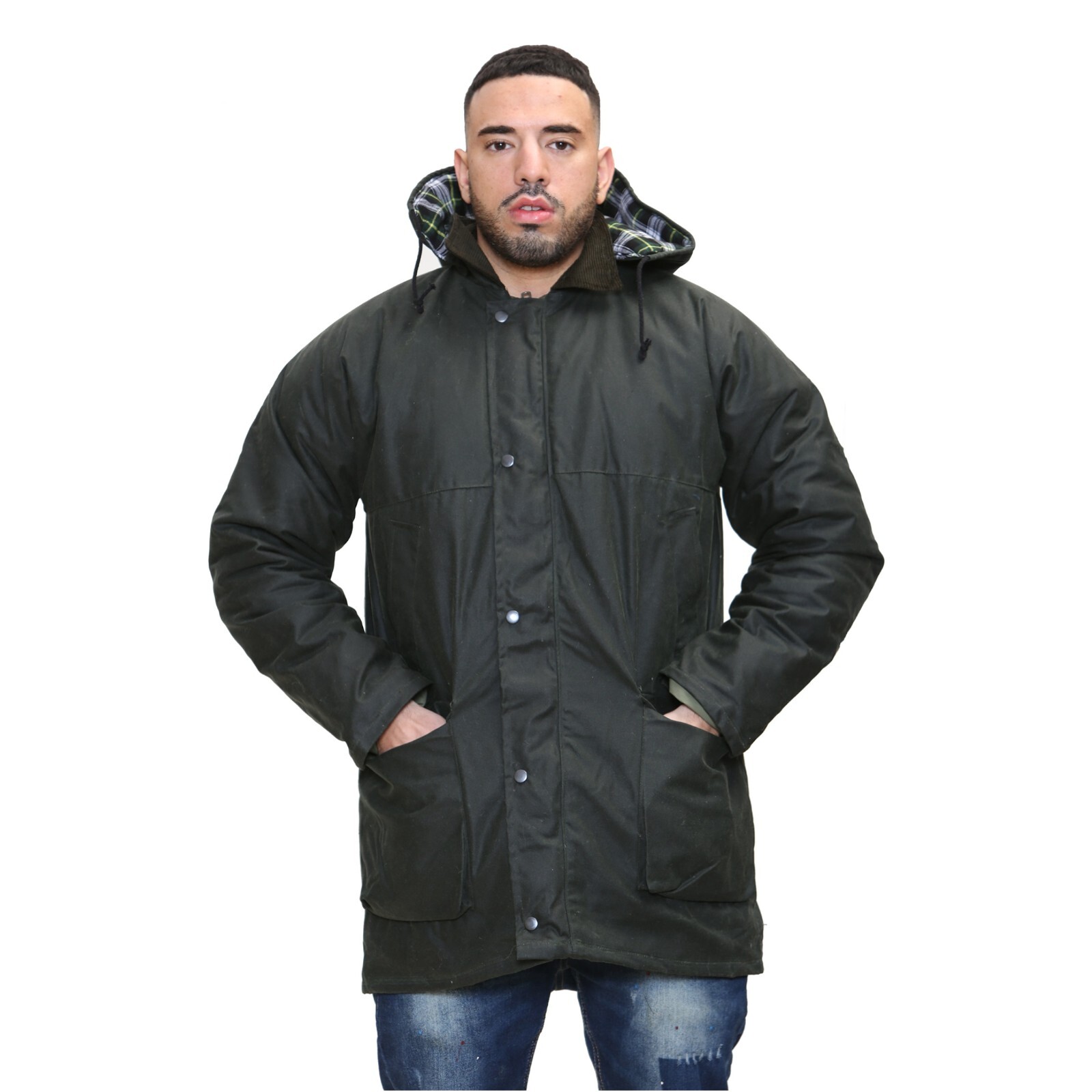 Item Specifics for Wax Jacket: Heavily Padded in Main Torso Area, Arms and Hood 100% Water and Windproof Adjustable Hood Removable Hood Corduroy Collar 2 Exterior Breast Handwarmer 2 Exterior Lower Large Pockets with Storm Flap Sturdy Zip Fastening with Stud Button Storm Flap 1 Interior Poachers Pocket 100% Cotton Body Fabric 100% Cotton Body Filling 100% Polyester Arm Lining