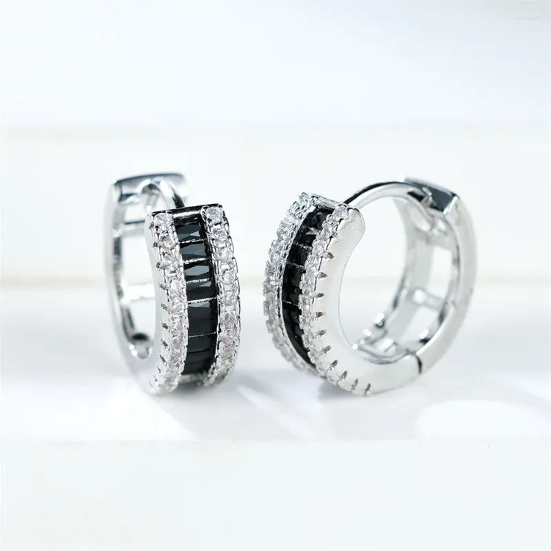 These stylish hoop earrings by Barbie Brides are perfect for any occasion, whether it's a wedding, graduation, or Valentine's Day. The earrings feature a round shape with 12mm diameter and are made of 14K White Gold Plated. The main stone is a black cubic zirconia in a baguette shape, surrounded by small pavé-set cubic zirconia stones for a luxurious look. These huggie-style earrings also come with features such as nickel-free and non-tarnish, ensuring that they remain in pristine condition even after years of wear. The earrings are suitable for both men and women and are a great addition to any jewelry collection.