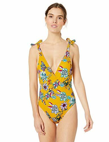 This plunging tie-shoulder one-piece swimsuit bathing suit from Jessica Simpson is the perfect blend of sophistication and playfulness. It is a great 1-piece swimsuit.